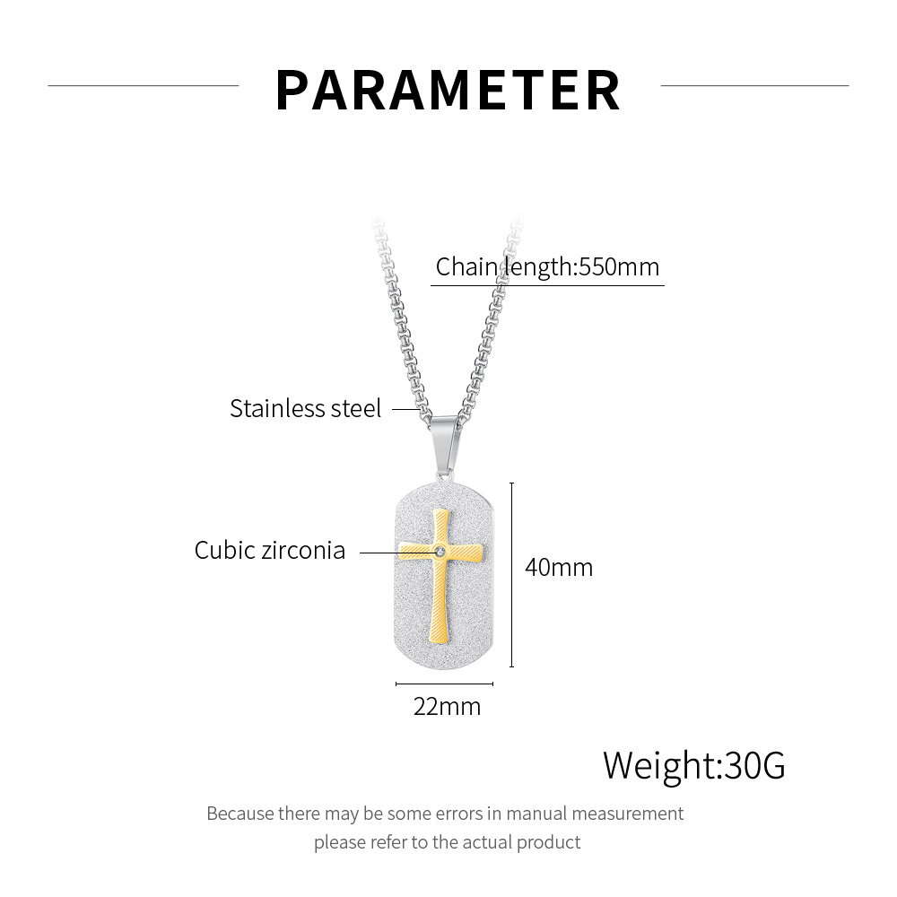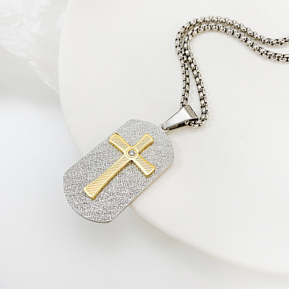 Colier inox placuta cu cruce. Dimensiuni lant: Lungime 55 cm, Grosime 3 mm. Dimensiuni pandantiv: 40 x 22 mm. Culoare: Argintiu.