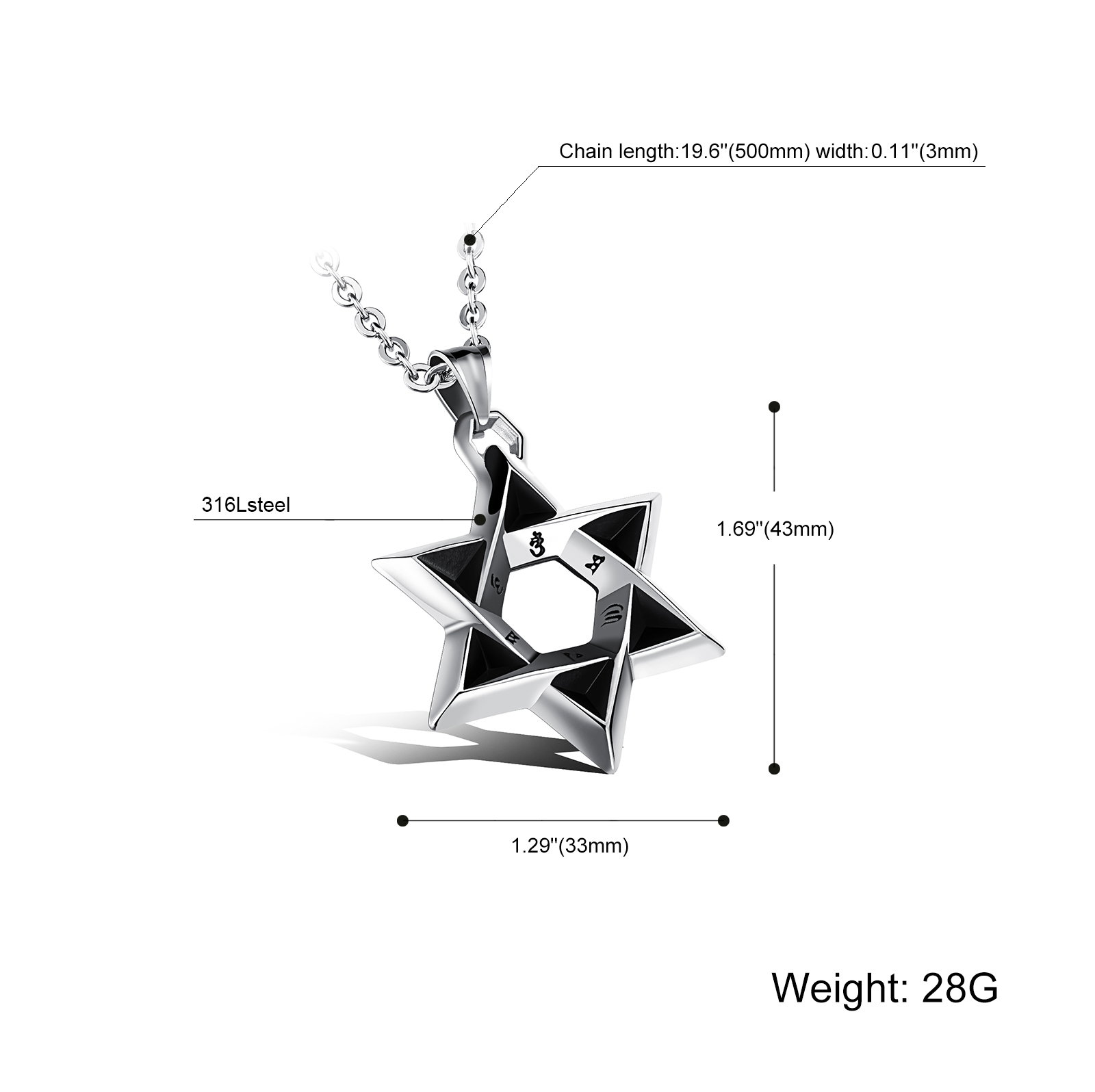 Dimensiuni: Dimensiuni Pandant 43 x 33 mm, Lungime Lant 50 + 5 cm, Grosime lant 3 mm.