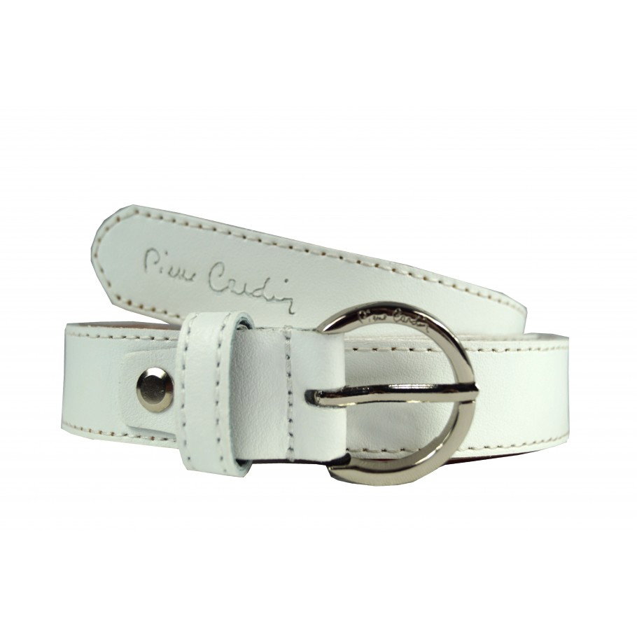 Curea dama alba din piele naturala Dimensiuni: Latime: 2 cm, Lungime: 109 cm (reglabila, cu surub) Productie: Fabricata in Italia Culoare: Alb Marcă: Pierre Cardin Material: Piele naturala Tip: Curea pentru femei Tip cataramă: crom - Livrat in cutie originala branduita cu marca producatorului (ideal pentru cadou)