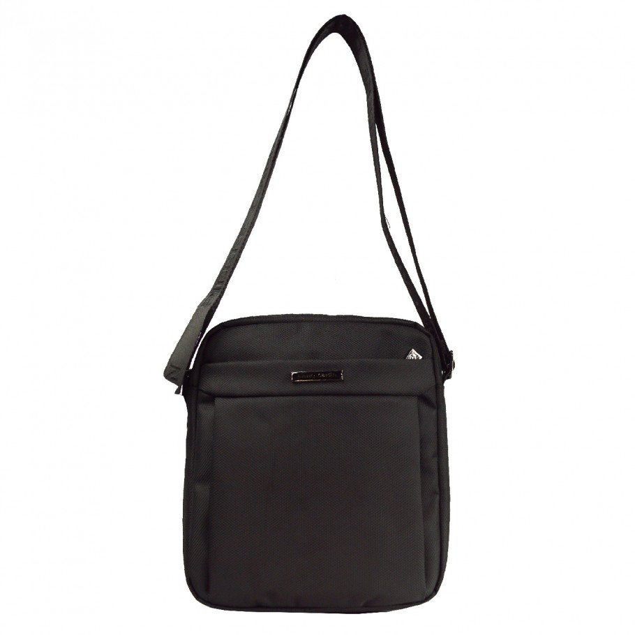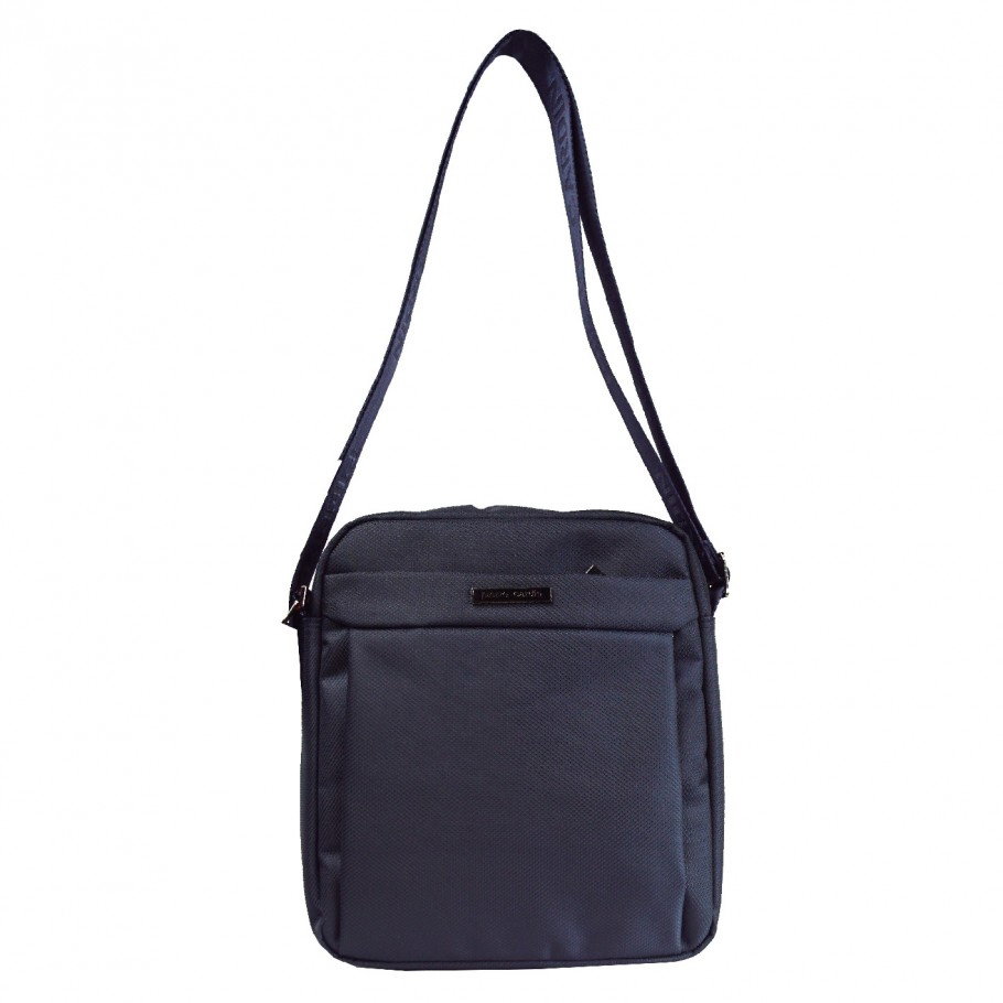 Borseta neagra din material textil. Brand: Pierre Cardin Dimensiuni: 26 x 23 x 7 cm Greutate: 0,4 KG Material: textil sintetic Căptușeală interioară: 100% Poliester Caracteristici: - Compartiment principal cu deschidere cu fermoar - Exterior: 1 buzunar cu fermoar pe fata si 1 buzunar pe spate tot cu fermoar - Interior: 1 buzunar de perete cu deschidere liberă + 1 buzunar de perete cu fermoar - curea de umăr reglabila (lungime maximă 50 cm)