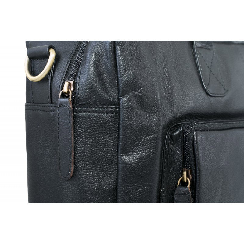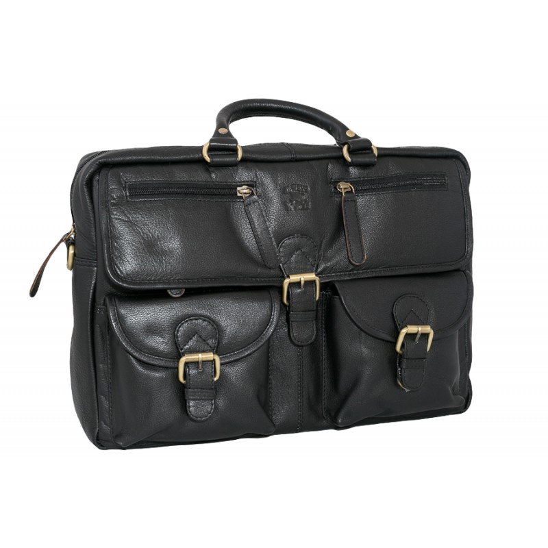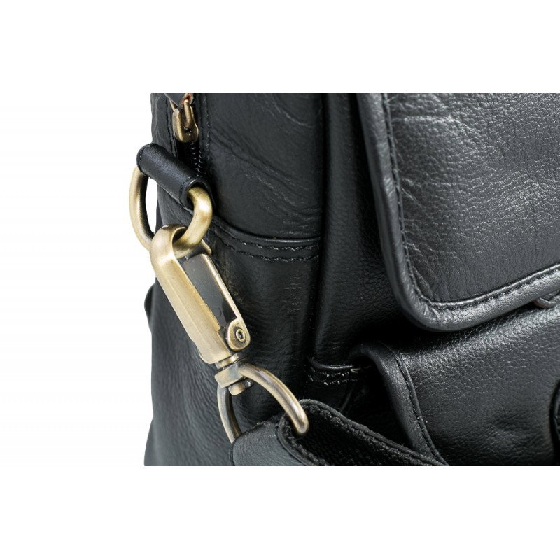 O geanta casual din piele naturala incapatoare si de calitate marca Always Wild, GEAG1, de culoare neagra. In partea din fata, clapeta si cele 2 buzunare aplicate sunt închise cu catarame, dar exista si 2 buzunare cu fermoar. Cureaua atașată de 150 cm vă permite să purtați genta și pe umăr. Geanta are multiple compartimente interioare si un buzunar mare cu fermoar pe spate. Dimensiuni: 38,5 x 27 x 10,5 cm. Material: piele naturală