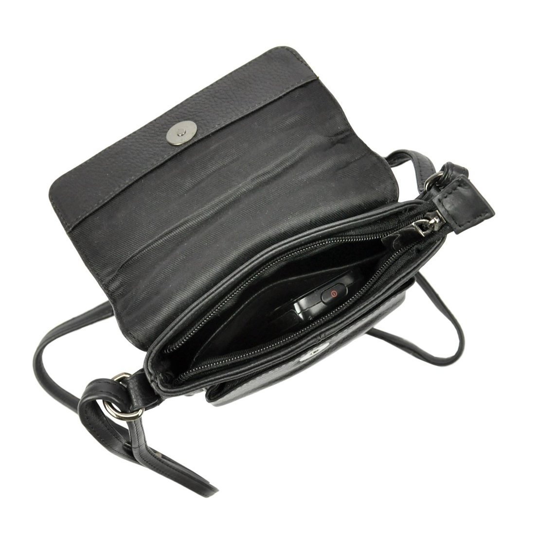Borseta de umar din piele naturala marca Pierre Andreus cu clapeta cu capsa magnetica si fermoare. În interiorul compartimentului principal există un compartiment telefonic. Borseta are un buzunar suplimentar plat în partea din față si un alt buzunar plat, închis cu un fermoare pe spate. Cureaua poate fi reglată până la aprox. 140 cm. Material: piele naturala Dimensiuni: Înălțime: 20 cm Lățime: 17 cm Adâncime: 5 cm
