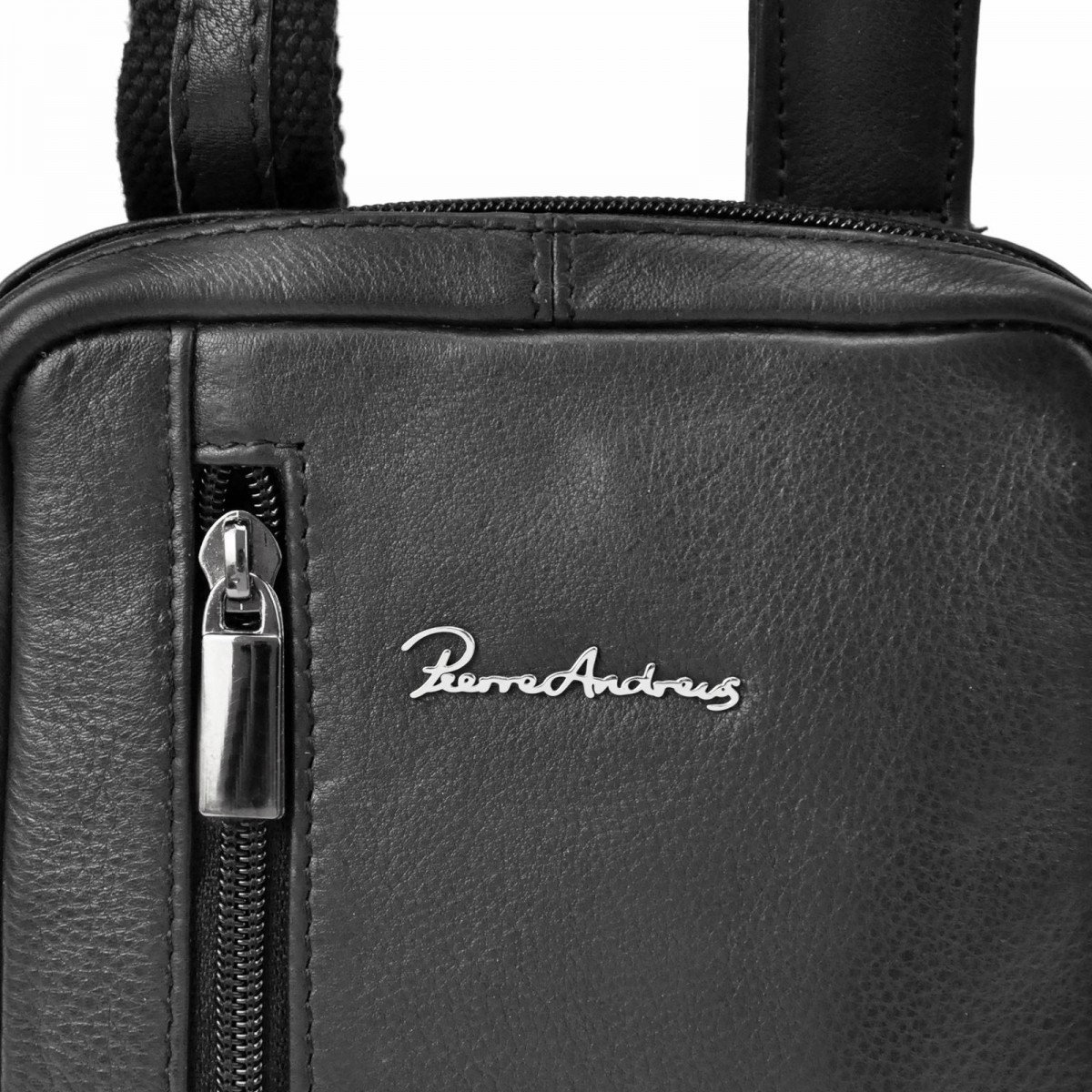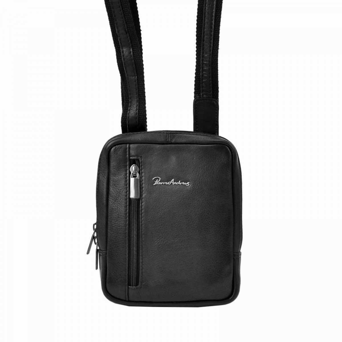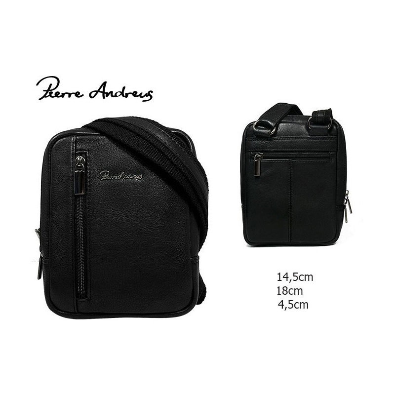 Borseta de umar din piele naturala marca Pierre Andreus cu fermoare. În interiorul compartimentului principal există un compartiment telefonic si un buzunar mic cu fermoar. Borseta are un buzunar suplimentar cu fermoar vertical în partea din față si un alt buzunar închis cu un fermoar pe spate. Cureaua poate fi reglată până la aprox. 140 cm.