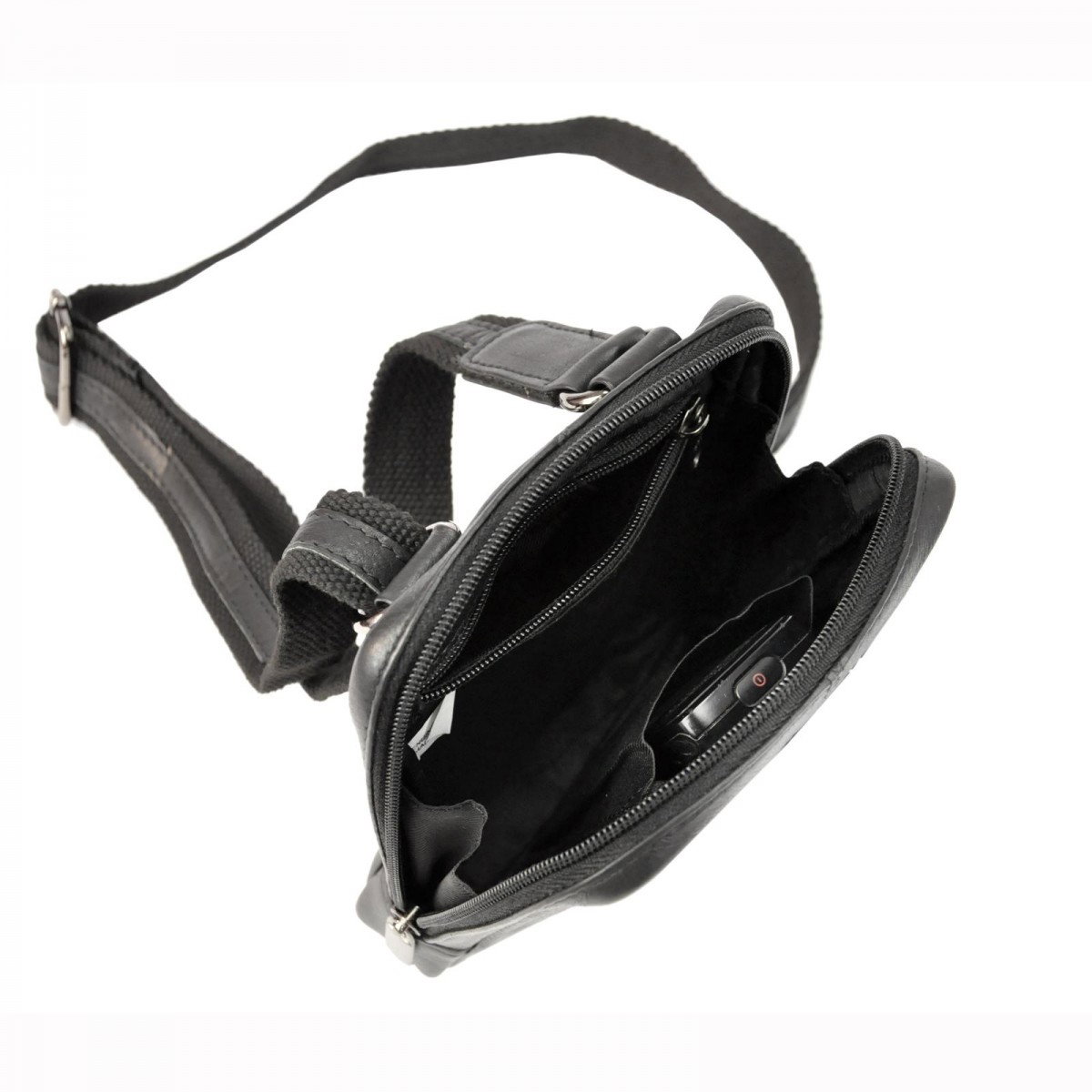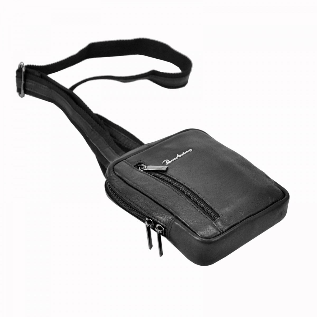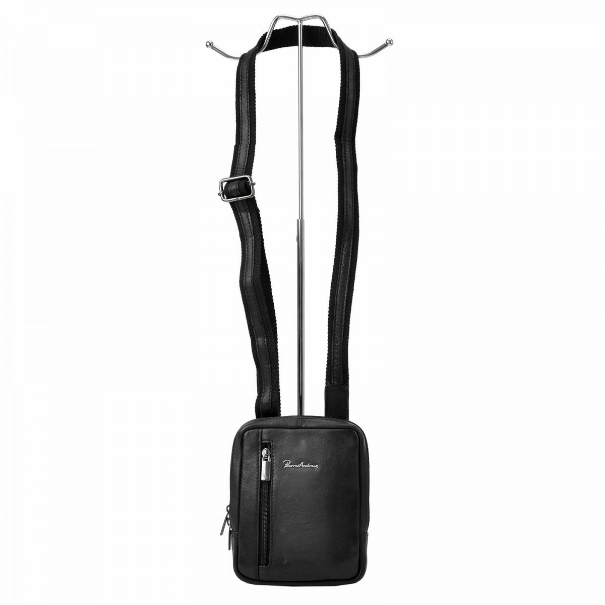 Borseta de umar din piele naturala marca Pierre Andreus cu fermoare. În interiorul compartimentului principal există un compartiment telefonic si un buzunar mic cu fermoar. Borseta are un buzunar suplimentar cu fermoar vertical în partea din față si un alt buzunar închis cu un fermoar pe spate. Cureaua poate fi reglată până la aprox. 140 cm.