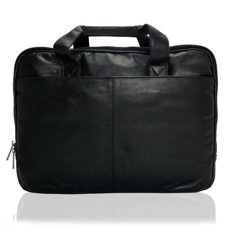 O geanta pentru laptop Bellugio din piele naturala deosebit de versatila ce poate fi folosita si la birou dar si cu alte ocazii. Geanta are numeroase buzunare utile și compartimente de depozitare (vezi poze). Modelul are două compartimente principale și unul suplimentar în față și multe partiții și si buzunare utile: două buzunare mai mari pentru alimentator și accesorii, un buzunar pentru un telefon mobil, si altele pentru stilouri și alte accesorii mai mici. Partea din față a gentii are două buzunare, cu fermoar iar pe partea din spate există și un buzunar mare, pentru documente.