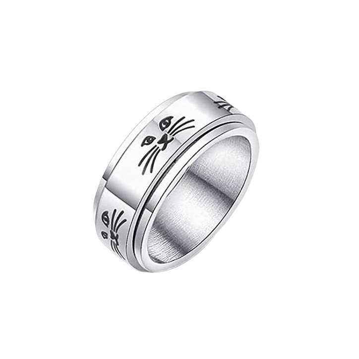 Inel antistres din otel inoxidabil, cu pisicute. Partea exterioara a inelului se invarte peste suprafata inelului interior. Latime: 6 mm.