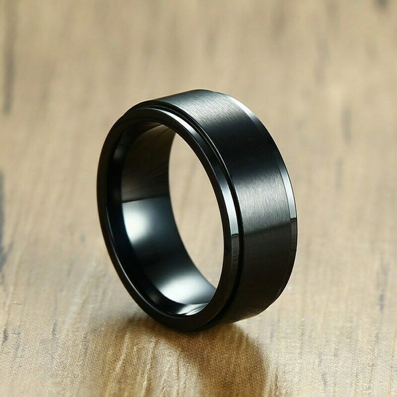 Inel antistres din otel inoxidabil, negru mat Partea exterioara a inelului se invarte peste suprafata inelului interior. Latime: 8 mm.
