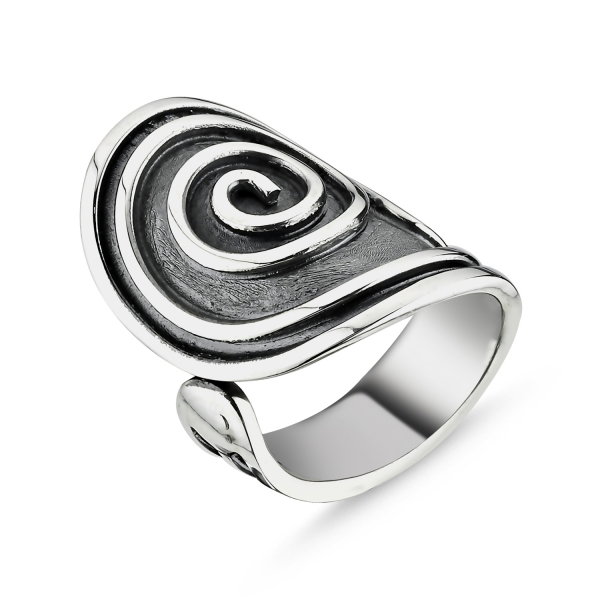 Inel reglabil din argint 925 lucrat manual, cu spirala si aspect vintage.