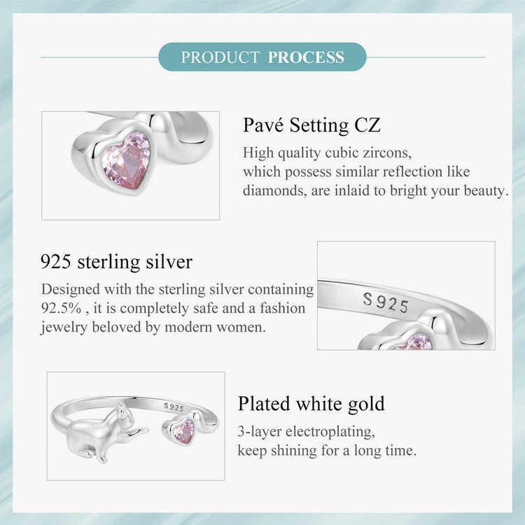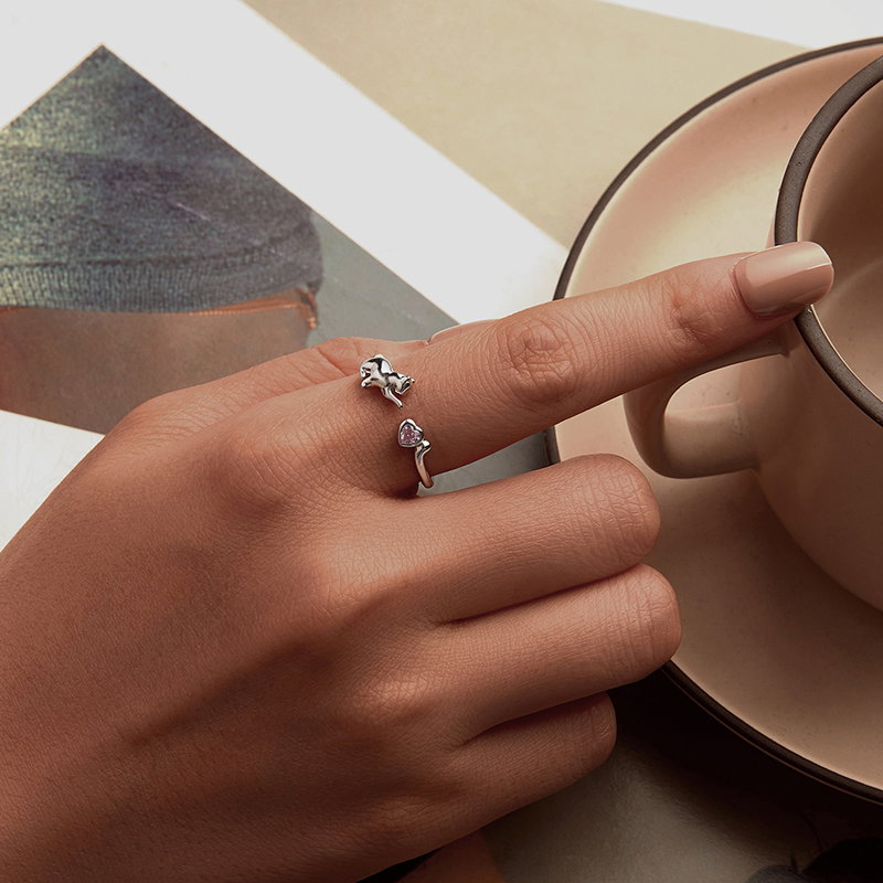 Un moment de bucurie se contureaza in jurul acestui inel delicat, ce infatiseaza o pisicuta jucausa, imbratisata de stralucirea unei zirconii in forma de inima. Designul sau elegant aduce o nota de feminitate si caldura, transformandu-l intr-un cadou perfect pentru iubitorii de animale. Poarta-l cu incredere si lasa-te purtata de emotia pe care o aduce, aducand un zambet pe chipul celor dragi.