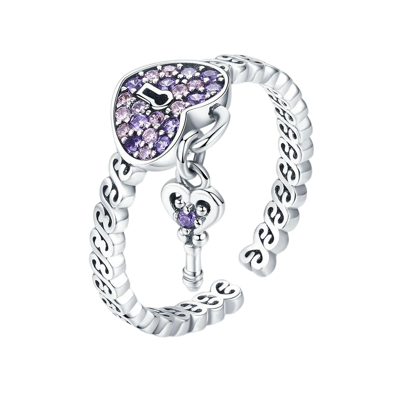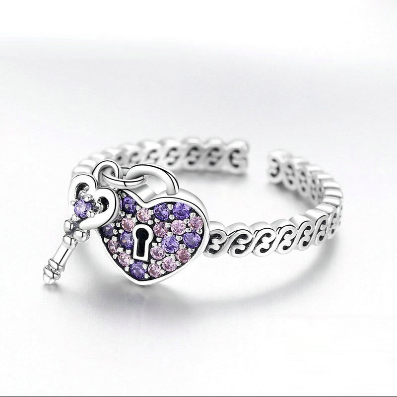 Inel argint Dragoste Ferecata. Culoare: Mov. Dimensiuni: Latime baza inel: 0.2 cm, dimensiuni inima: 1.9 x 0.9 cm; Greutate: 2,3 grame. Materiale: Argint 925, Zirconiu, Placaj: Fara placare. Ambalaj: Cutie bijuterii.