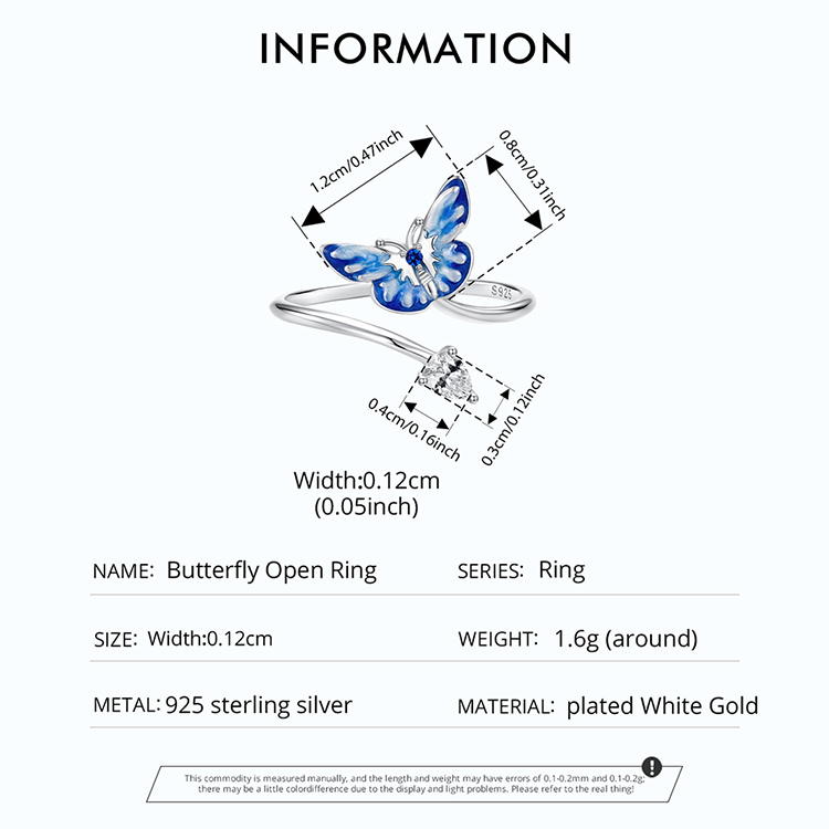 Dimensiuni: Latime 0,12 cm, Fluturas 0,8 * 1,2 cm, Zirconiu 0,4 * 0,3 cm, Greutate 1,6 grame