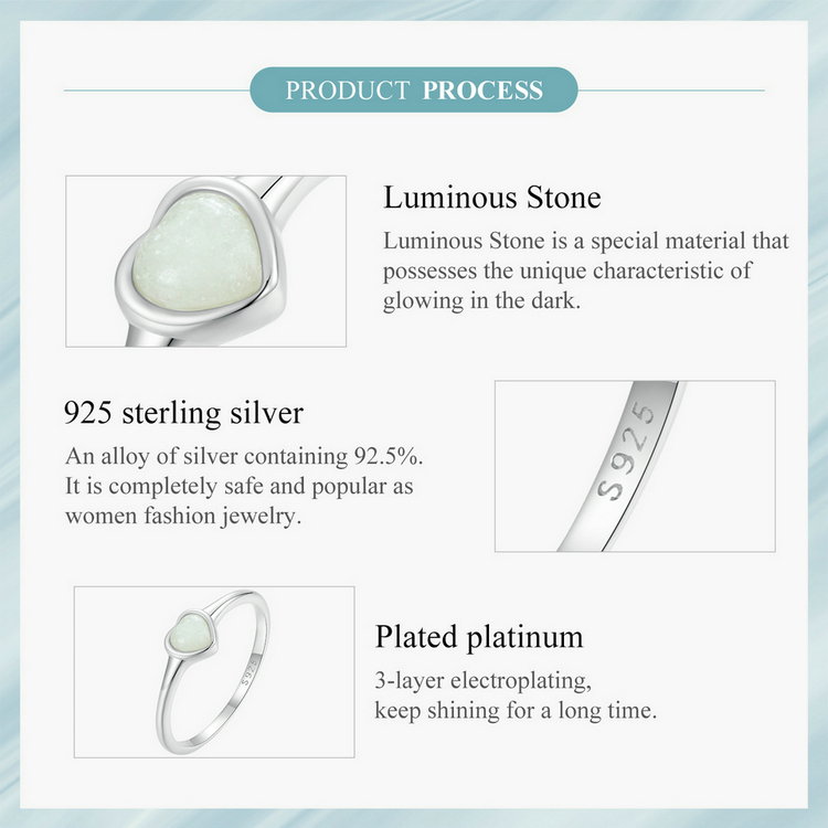 Material: Argint 925 placat cu rodiu, Piatra fosforescenta