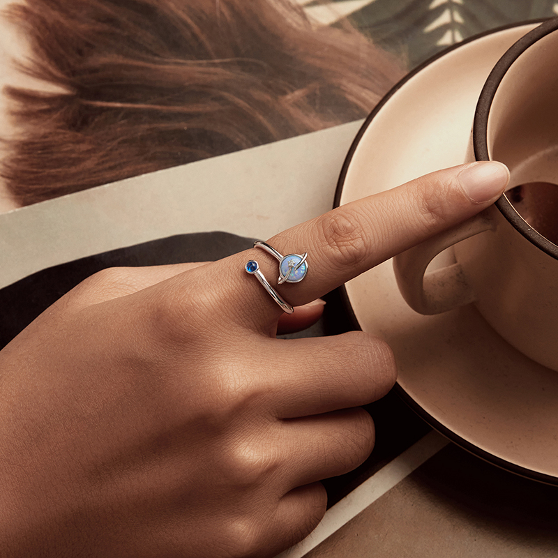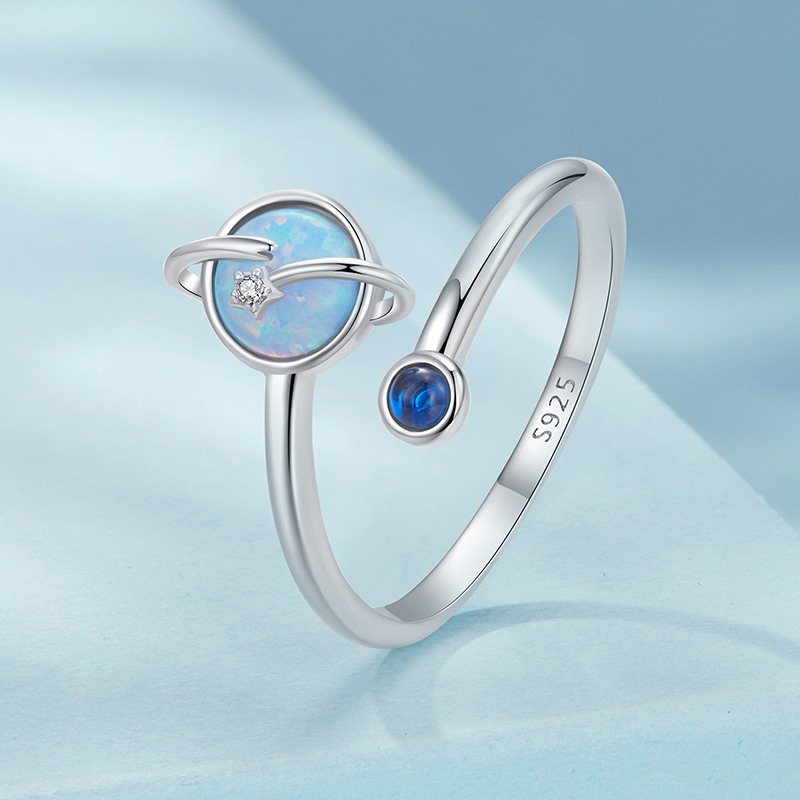 Inel argint Planeta si Opal. Dimensiuni: Latime 0,2 cm, Greutate 2 grame. Material: Argint 925 placat cu rodiu, Zirconiu si Opal. Culoare: Bleu. Pietre: Opal.