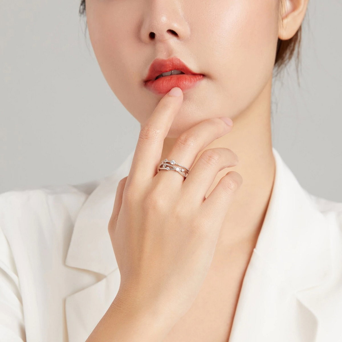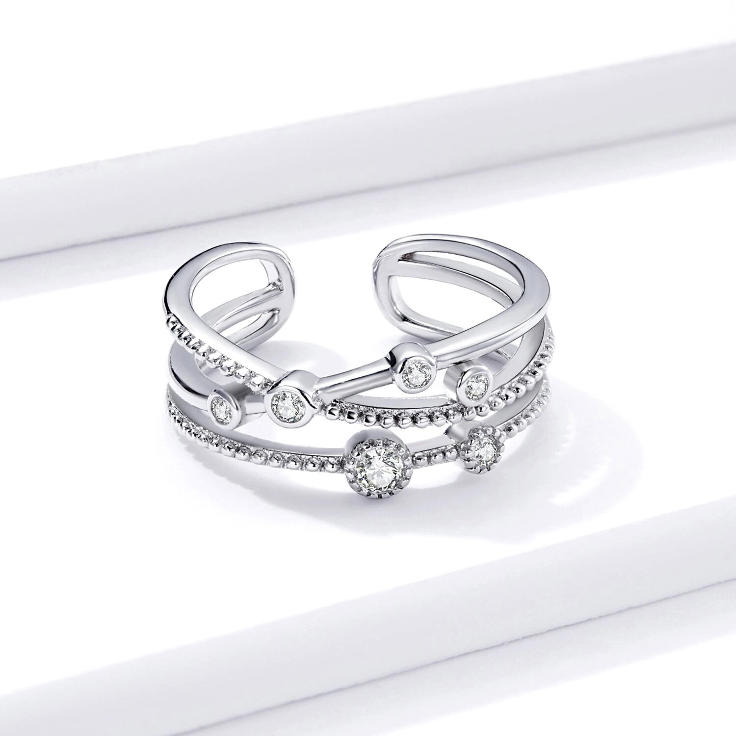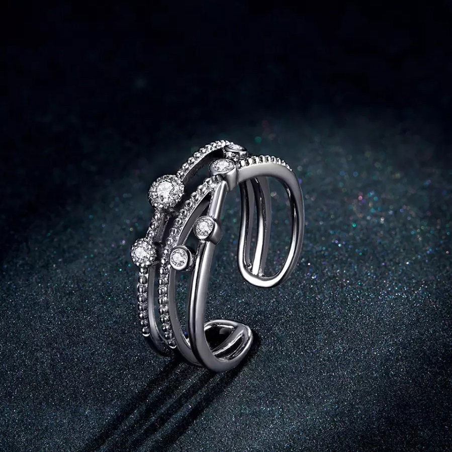 Inel argint reglabil cu stea stralucitoare. Material: Argint 925, placat cu rodiu, zirconiu. Dimensiuni: Latime inel: 0,6 cm, Greutate: 2,3 grame.