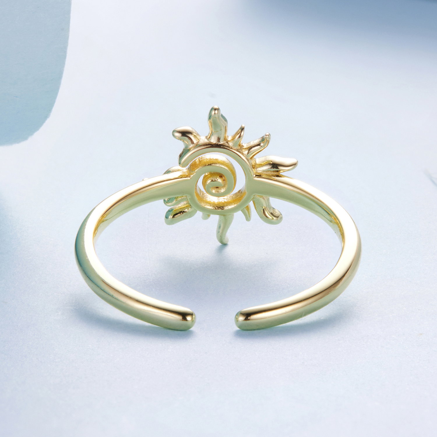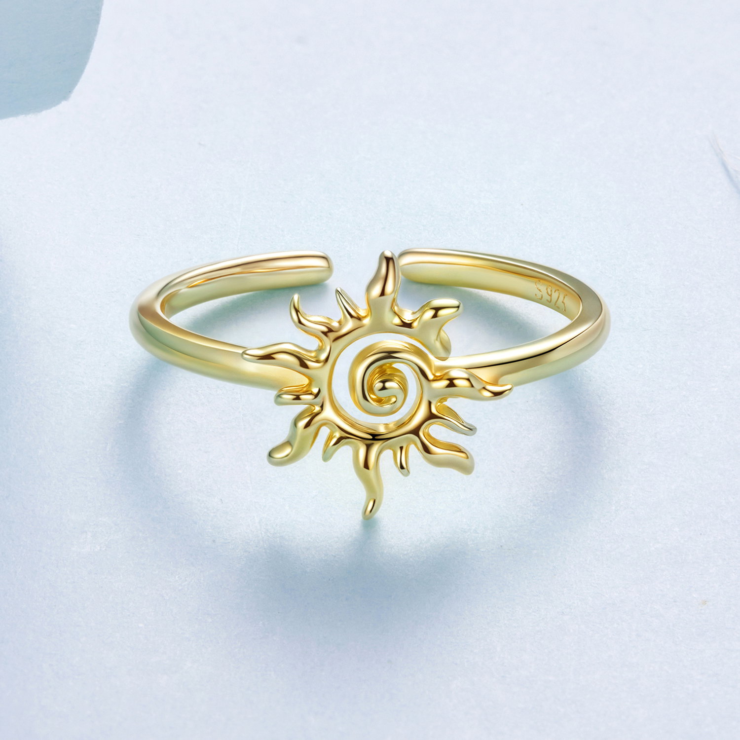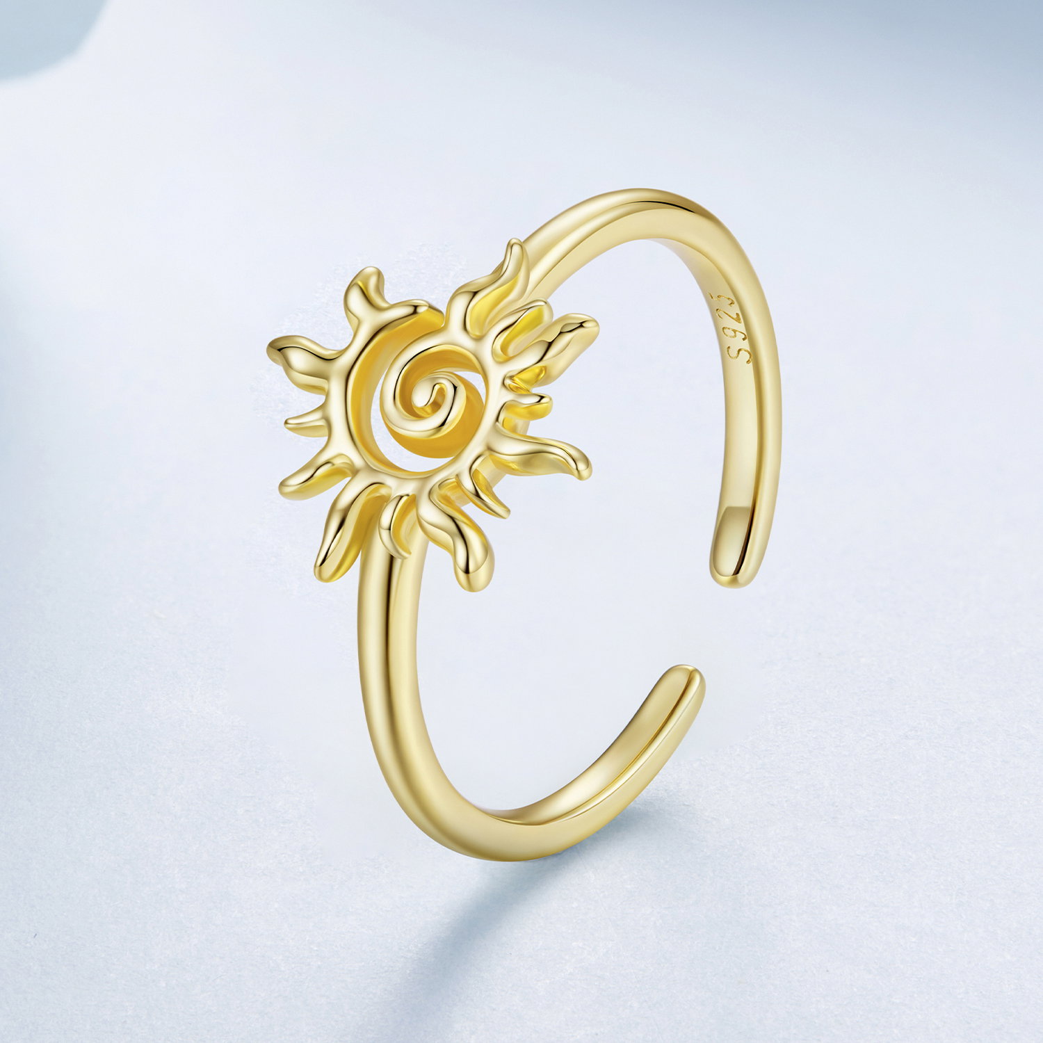 Soarele da acestui inel reglabil un aer cald si luminos, iar forma bine conturata il face usor de observat pe mana. Designul deschis il pastreaza lejer vizual, iar motivul central ramane in prim-plan fara sa para incarcat. Realizat din Argint 925 placat cu aur, inelul are un aspect feminin si solar, potrivit pentru tinute luminoase sau combinatii delicate. Este genul de bijuterie care aduce imediat o nota optimista si se poarta usor, atat singura, cat si alaturi de alte inele subtiri.
