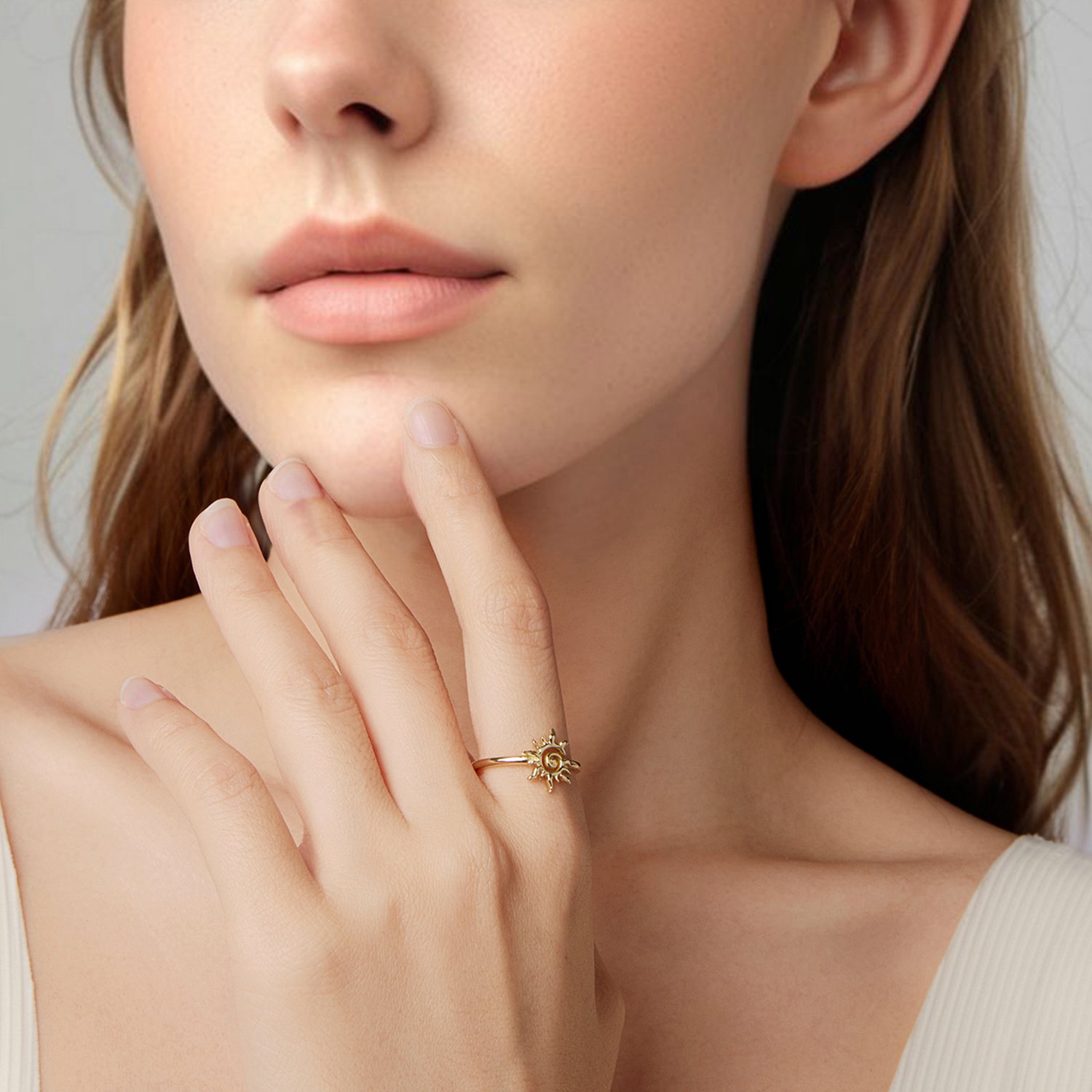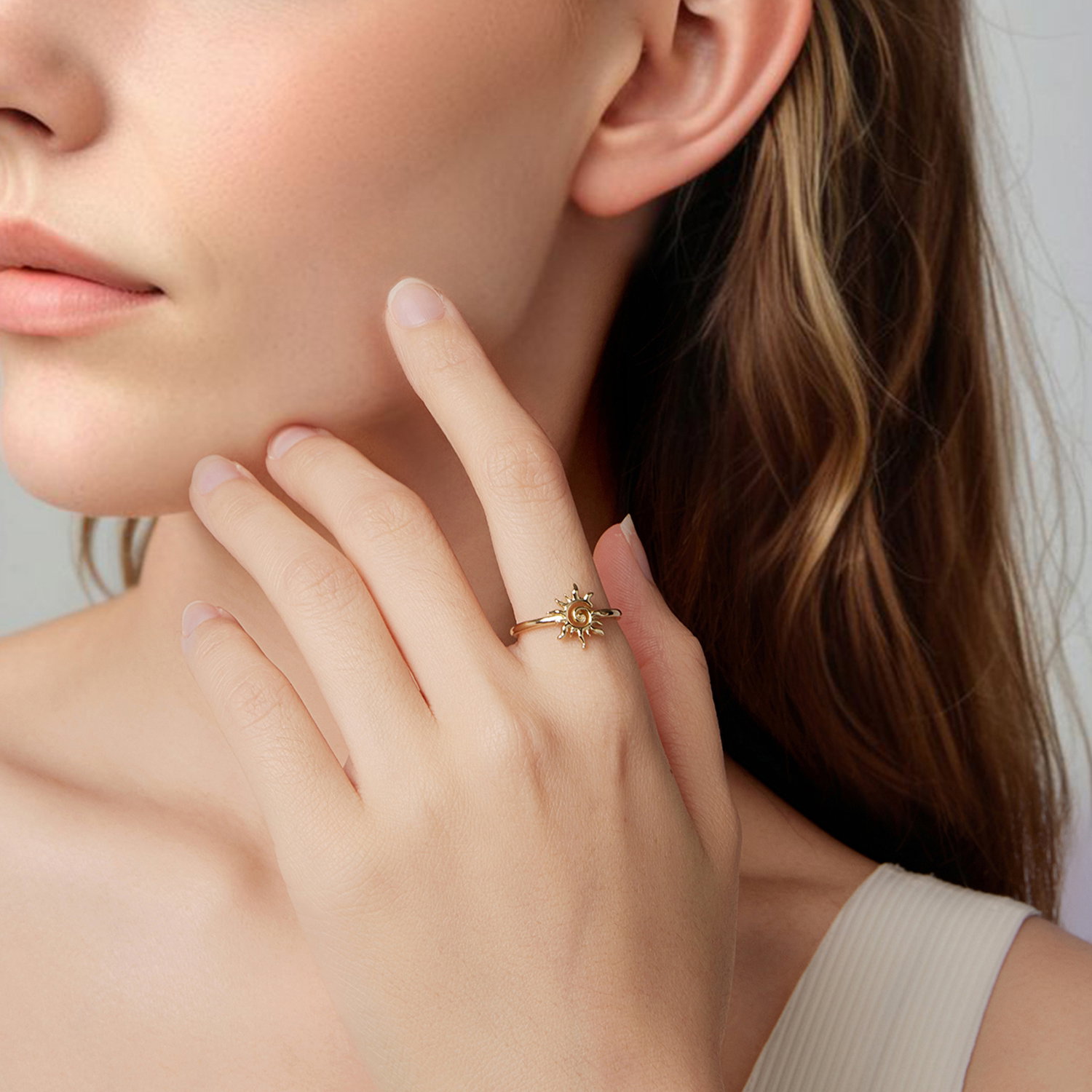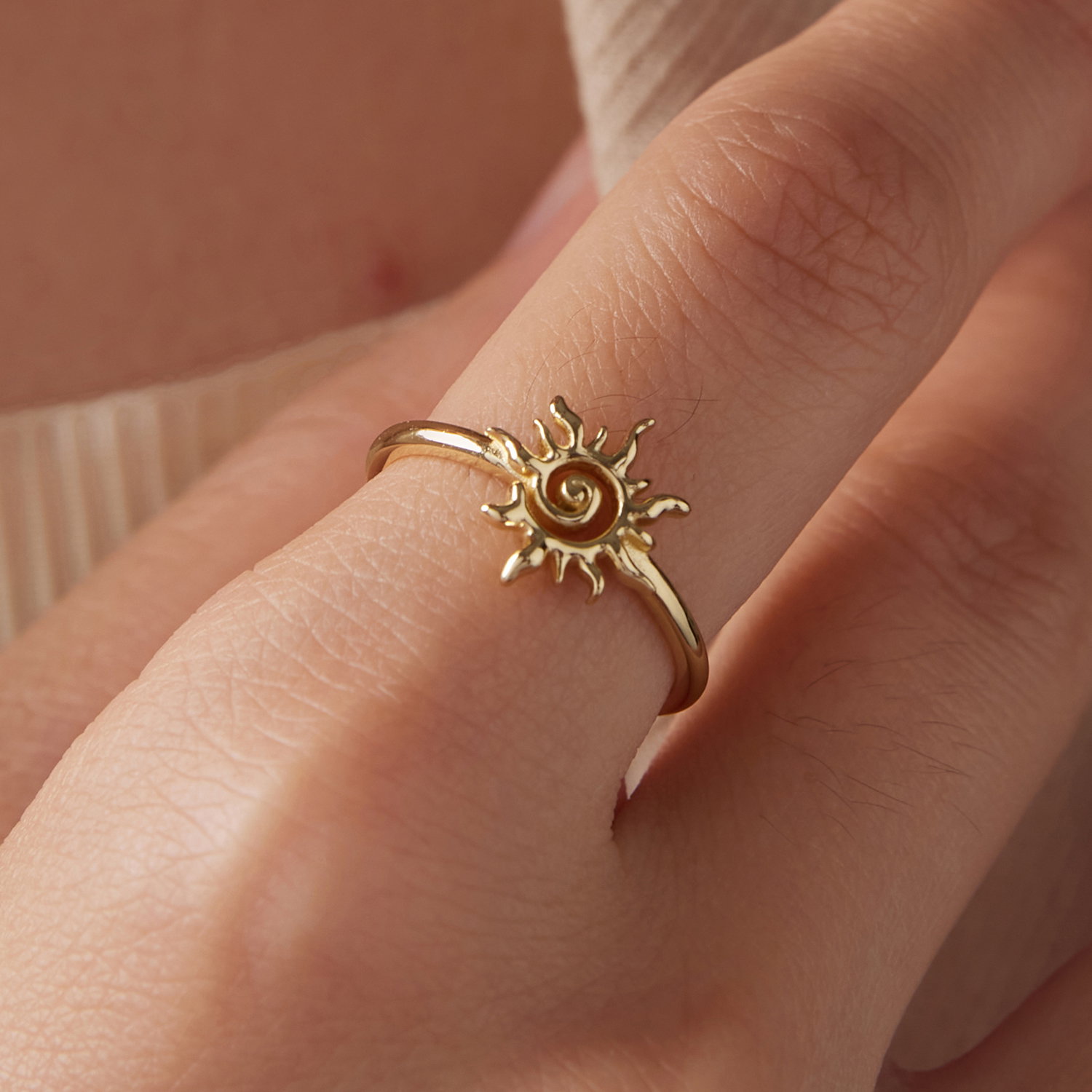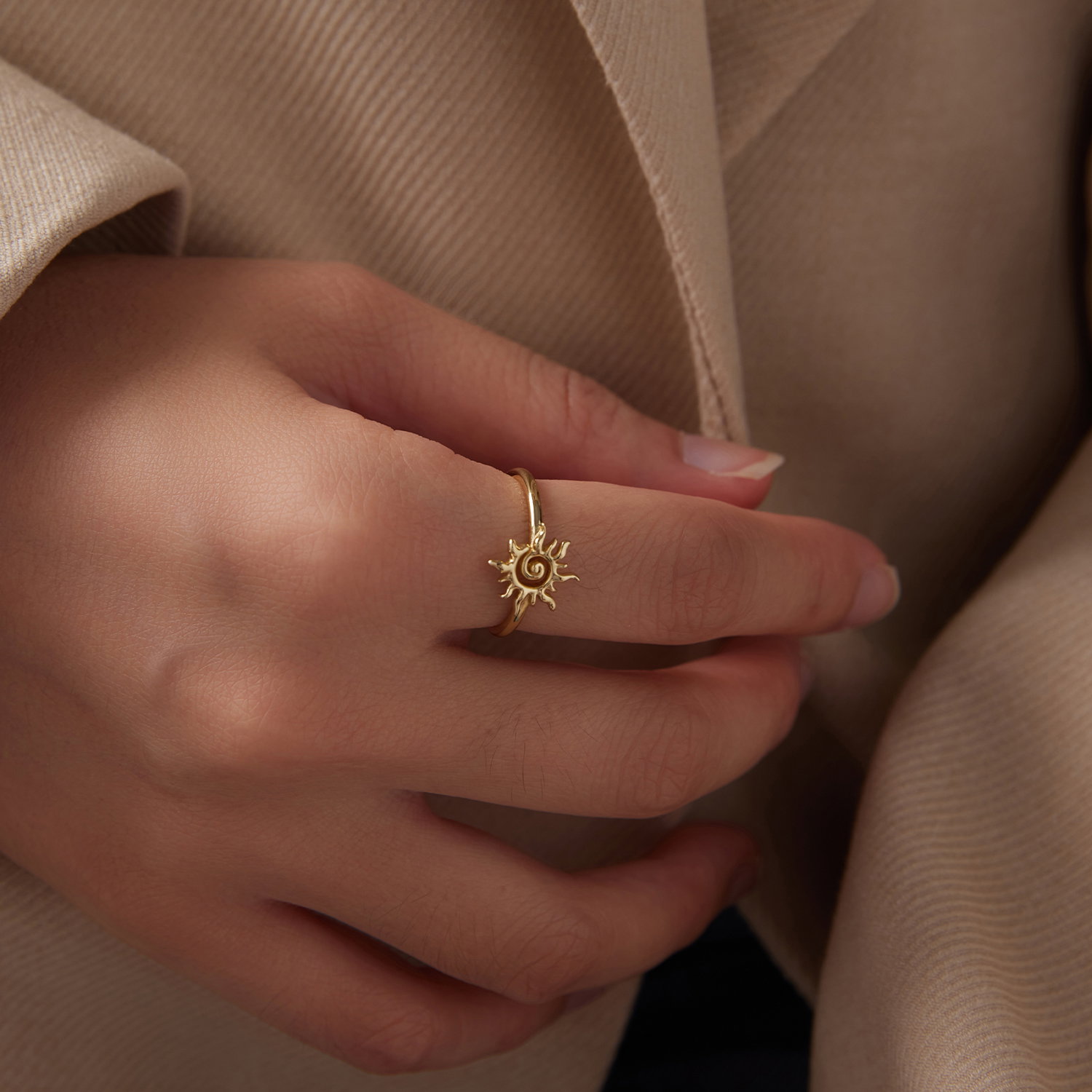 Soarele da acestui inel reglabil un aer cald si luminos, iar forma bine conturata il face usor de observat pe mana. Designul deschis il pastreaza lejer vizual, iar motivul central ramane in prim-plan fara sa para incarcat. Realizat din Argint 925 placat cu aur, inelul are un aspect feminin si solar, potrivit pentru tinute luminoase sau combinatii delicate. Este genul de bijuterie care aduce imediat o nota optimista si se poarta usor, atat singura, cat si alaturi de alte inele subtiri.