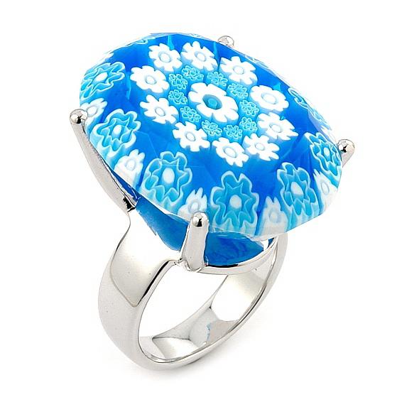 Inel argint 925 rodiat cu sticla murano millefiori