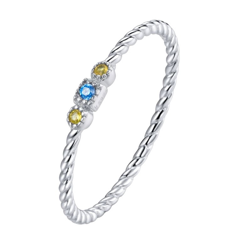 Inel argint sfoara cu zirconii colorate. Material: Argint 925, zirconiu, placat cu rodiu. Dimensiuni: Grosimea inelului: 1 mm, Lungime si latime ansamblu pietre: 0,2 x 0,7 cm, Greutate: 0,8 grame.