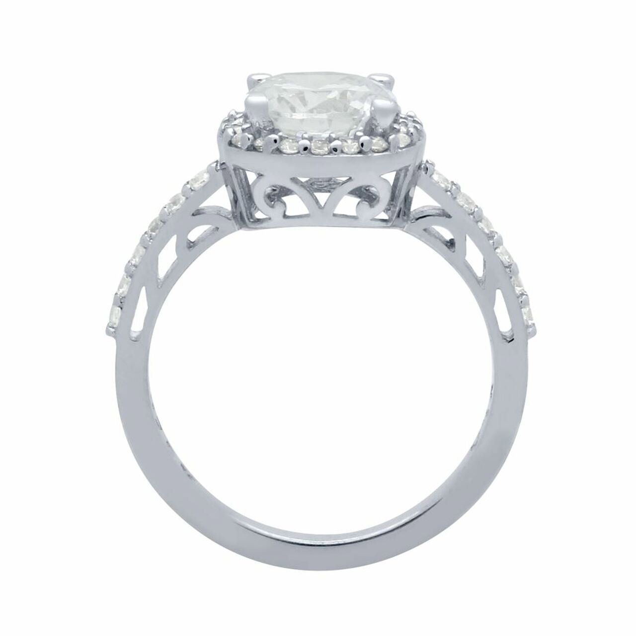 Dimensiuni: Piatra centrala: CZ rotund de 7,5 mm, Pietre laterale: CZ rotund de 1,75 mm, Pietre inconjuratoare: CZ rotund de 1,25 mm. Greutate: 3,2 grame.