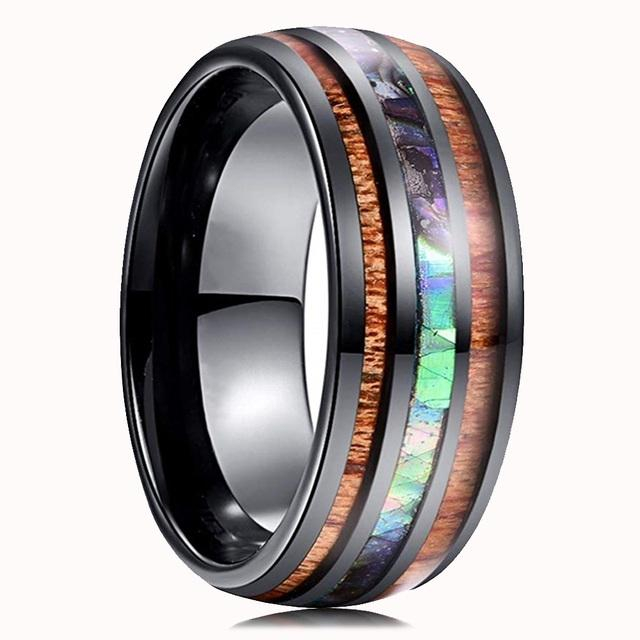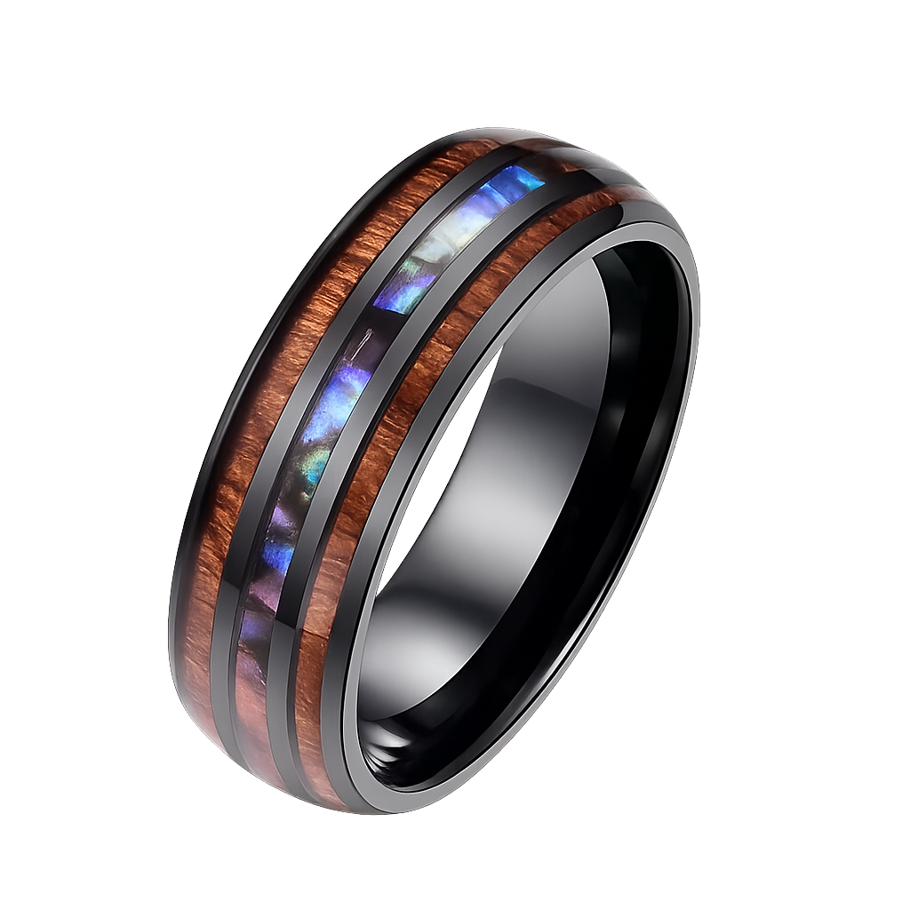 Lasă-te cucerit de rafinamentul discret al acestui inel din oţel inoxidabil negru, cu o inserţie elegantă de abalon și lemn hawaian — o combinație inedită între strălucirea fascinantă a scoicii perlă și textura caldă, naturală a lemnului. Fiecare detaliu vorbeşte despre o eleganţă masculină, non-şablon, care nu trece neobservată.