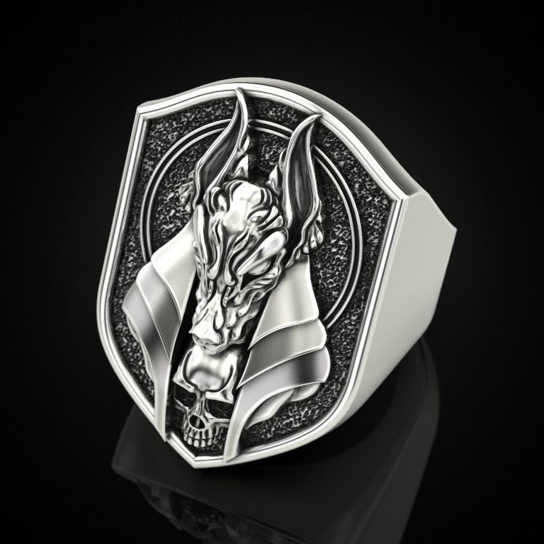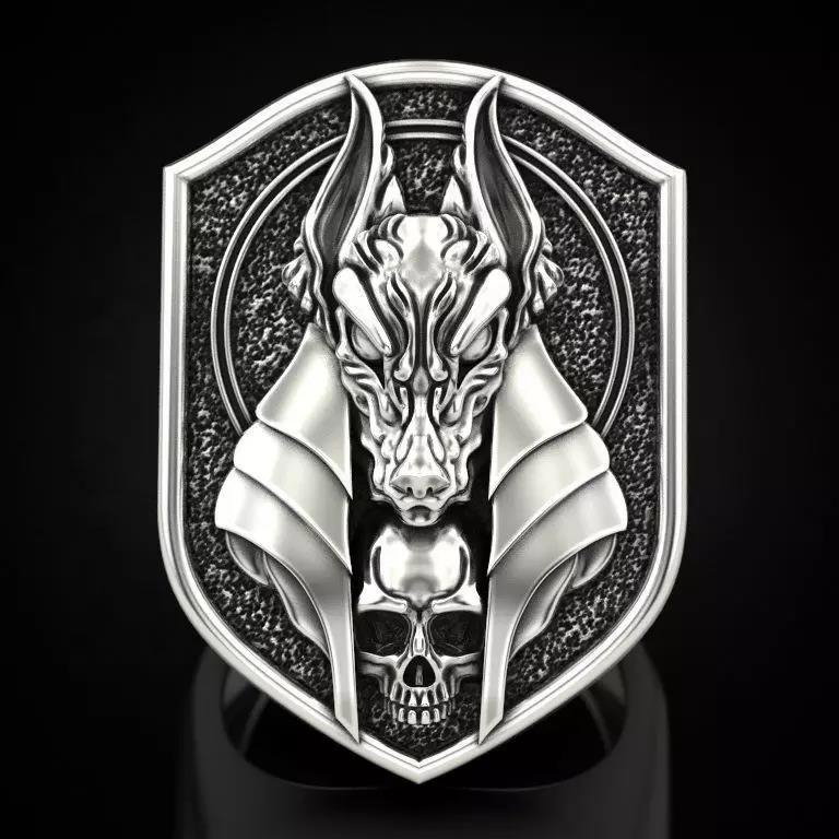 Inel din otel inoxidabil cap de sacal - Mitologie Creativa. Latime: 2,5 cm.