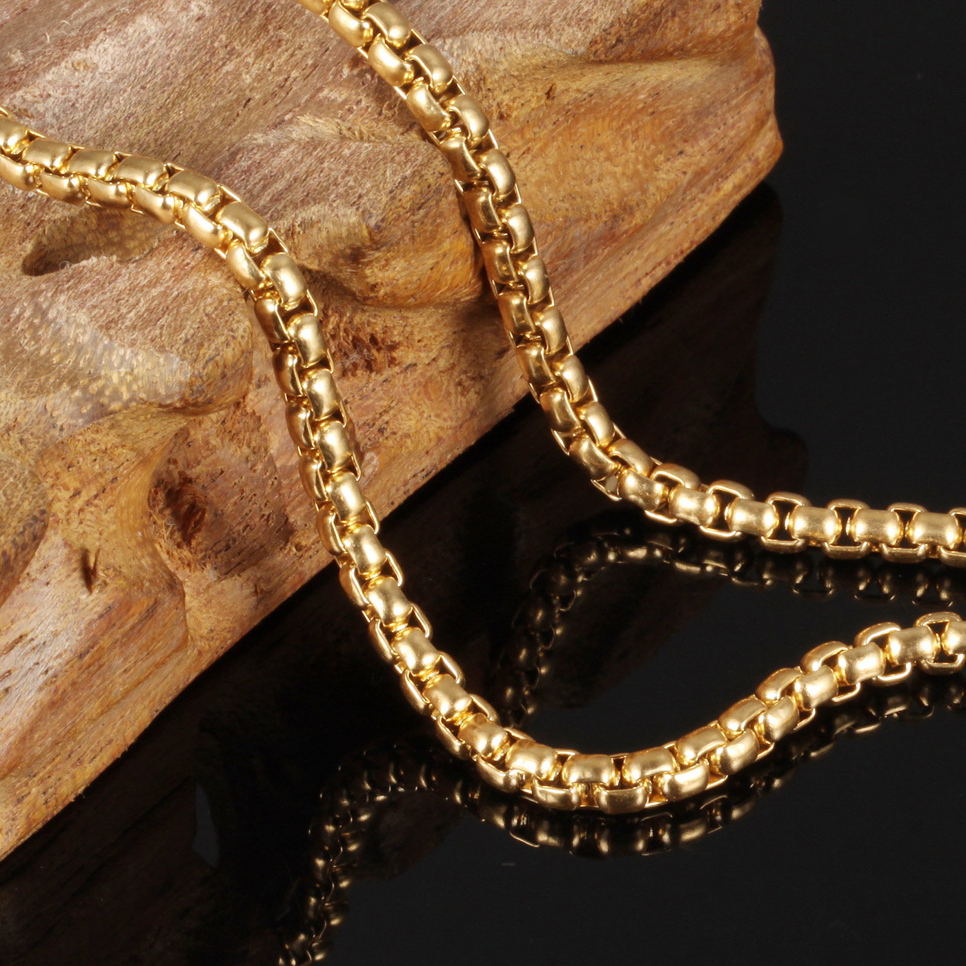 Lant inox auriu 3 mm x 55 cm. Dimensiuni: 3 mm x 55 cm. Culoare: auriu. Material: Inox. Ambalaj: Saculet bijuterii (gratuit).