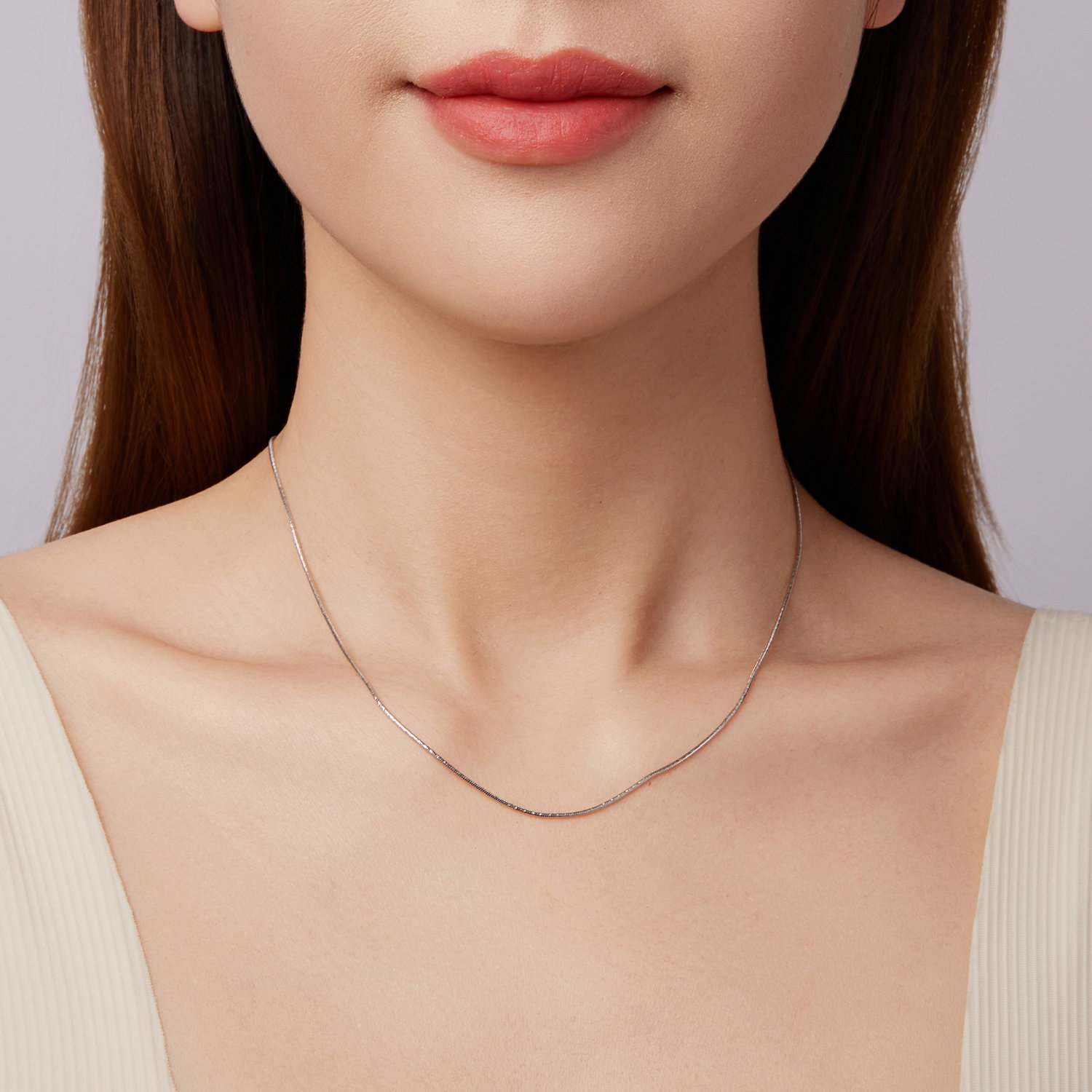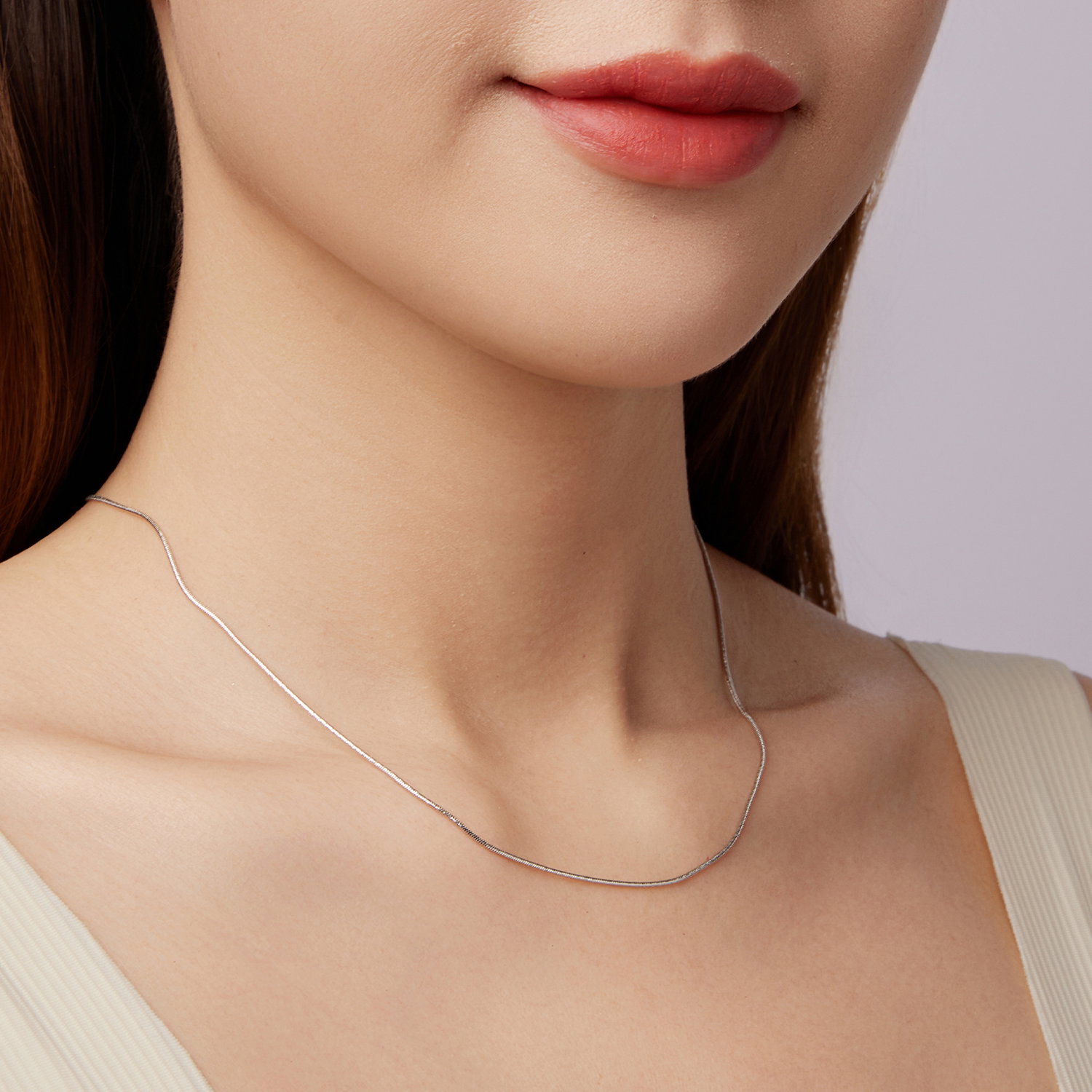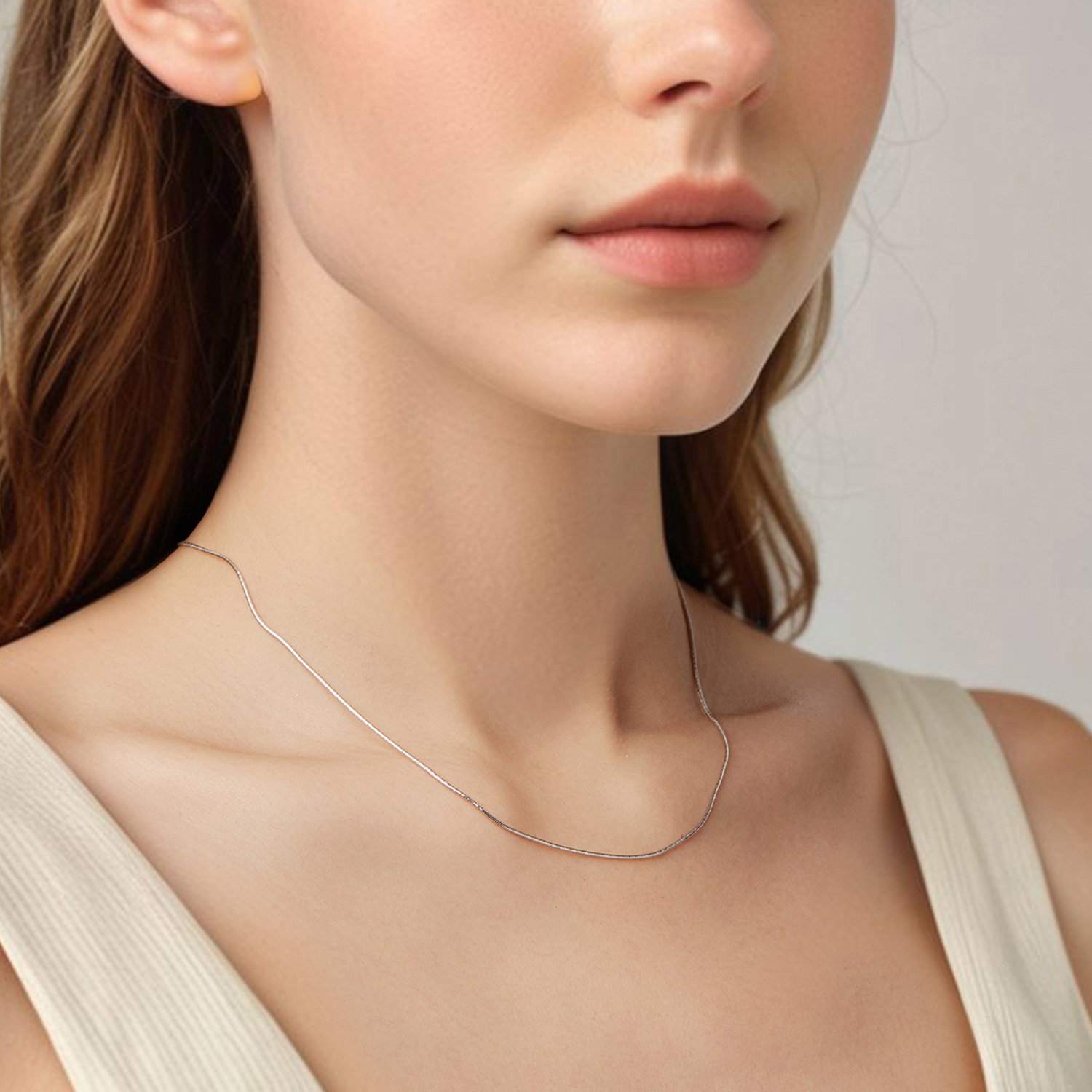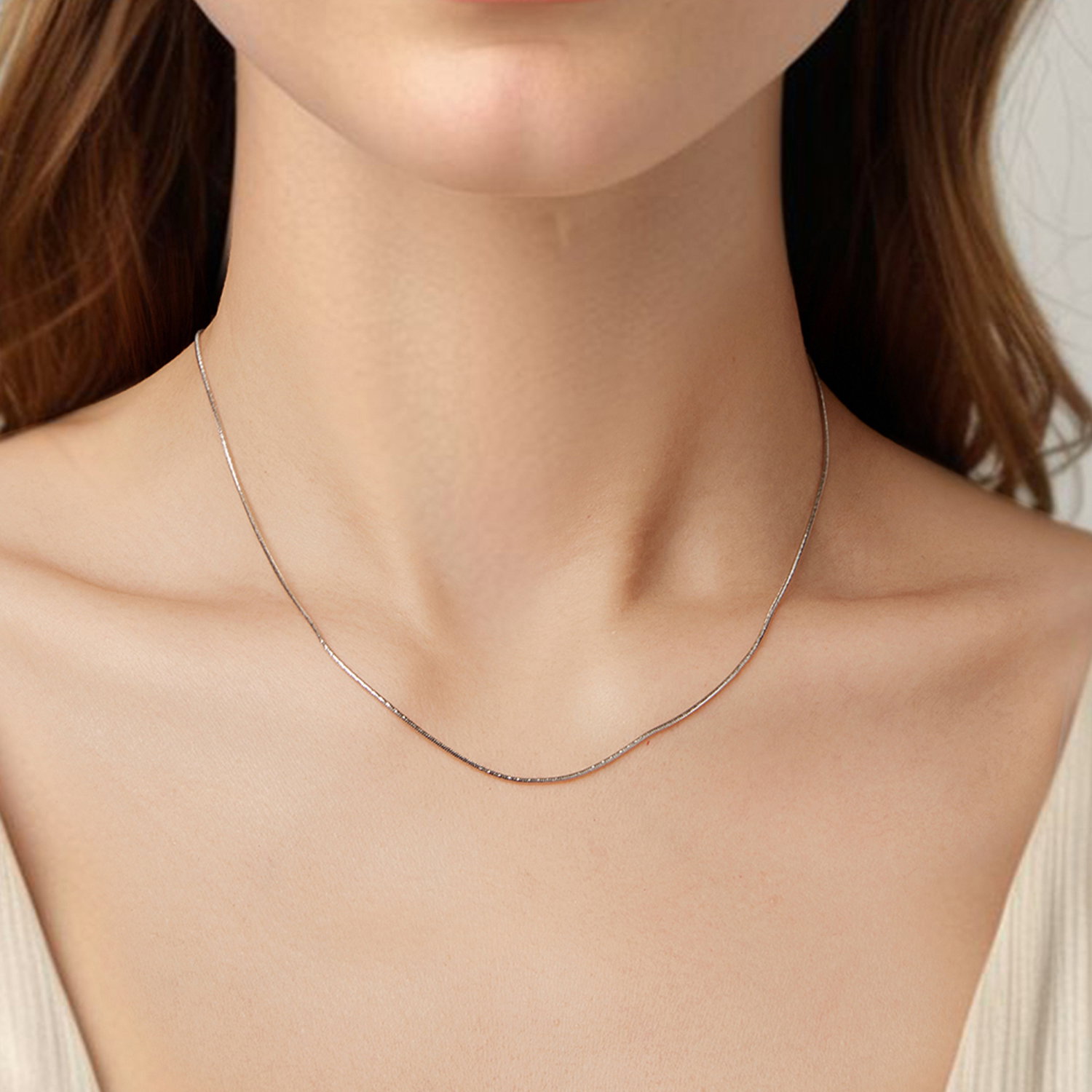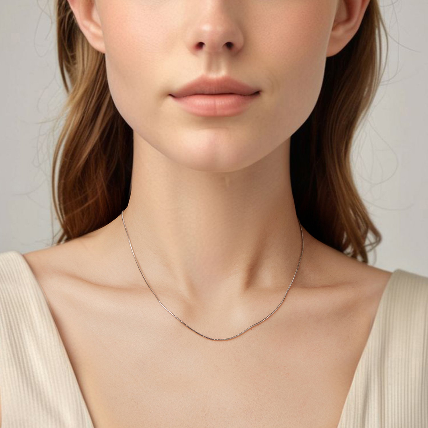 Lantul cu model sarpe da acestui lantisor un aspect fluid si modern, foarte usor de observat prin felul in care urmareste linia gatului. Suprafata neteda si compacta ii da o eleganta simpla, fara detalii in plus, ceea ce il face usor de purtat atat singur, cat si in combinatii. Realizat din Argint 925 placat cu rodiu, lantisorul are un luciu rece si uniform, cu un finisaj curat. Este o piesa versatila, potrivita pentru tinute minimaliste sau pentru layering discret cu alte lantisoare fine.