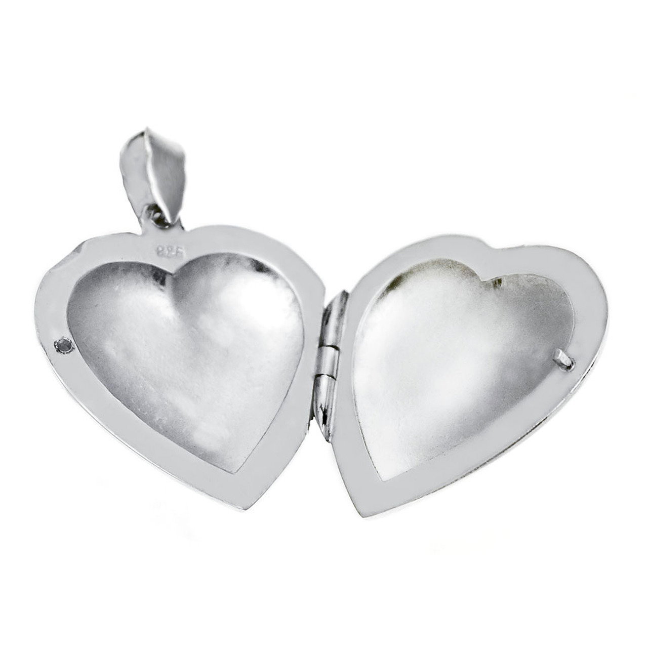 Pandantiv in forma de inimioara din argint 925, mare, cu deschidere tip balama. Ideal pentru insertie poze cu cei dragi. Dimensiuni: 35 mm x 25 mm. Greutate: 6 grame. Ambalaj: Cutie bijuterii.