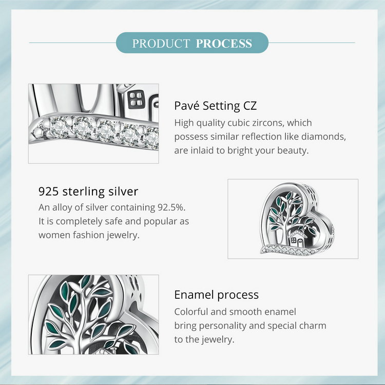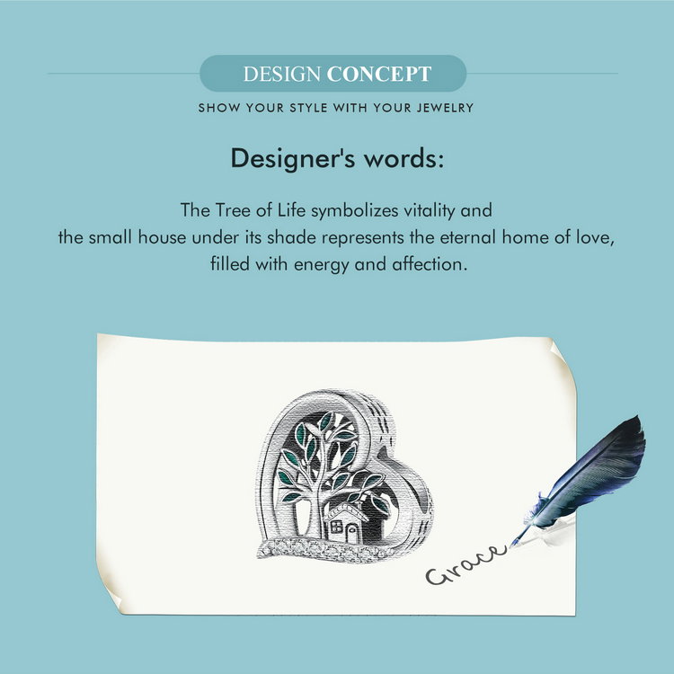 In inima acestui pandantiv se ascunde o poveste de iubire si apartenenta, cu un copac al vietii care simbolizeaza legaturile profunde. Detaliile fine ale casei si frunzelor aduc un strop de natura in viata ta, in timp ce zirconii stralucesc delicat, adaugand un farmec aparte. Poarta-l pentru a te simti conectata la radacinile tale si pentru a aduce un zambet pe chipul celor dragi. Acest pandantiv este cadoul perfect pentru a exprima afectiunea si aprecierea.
