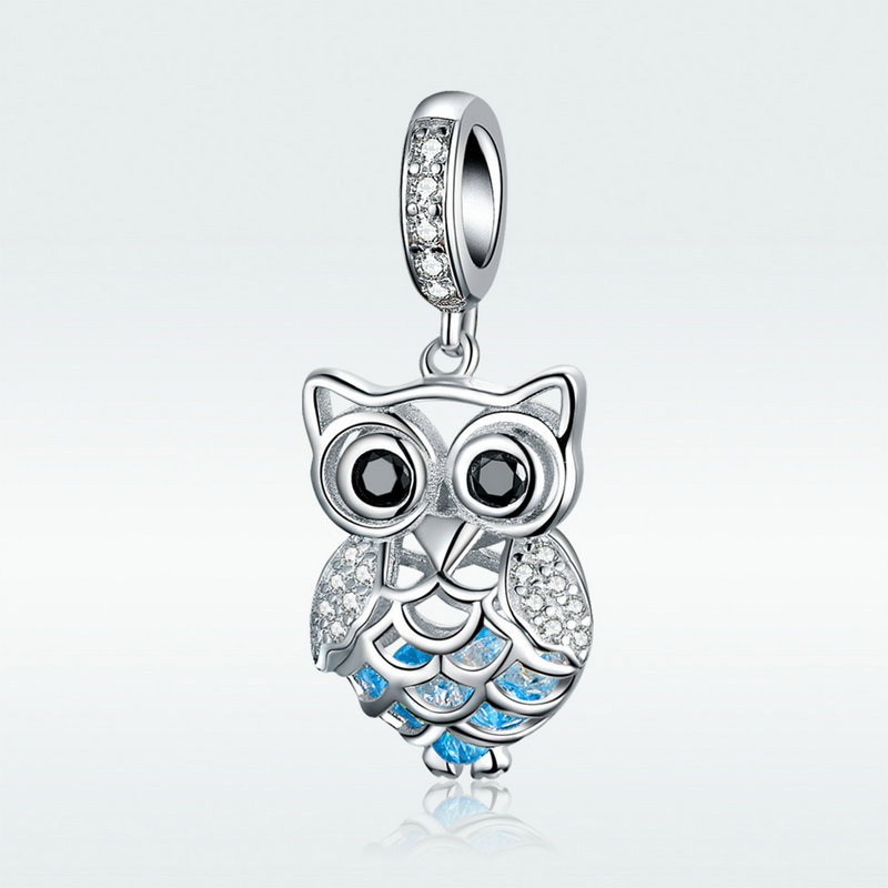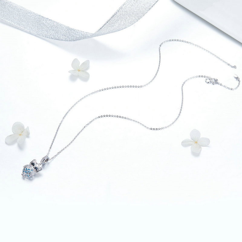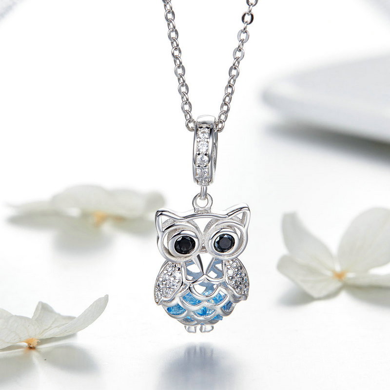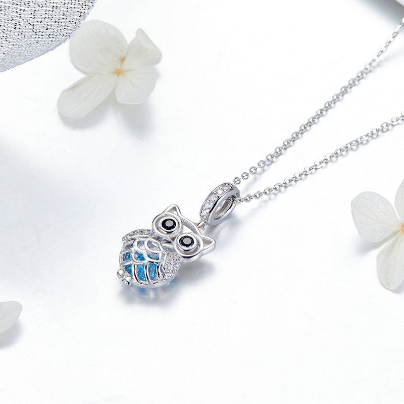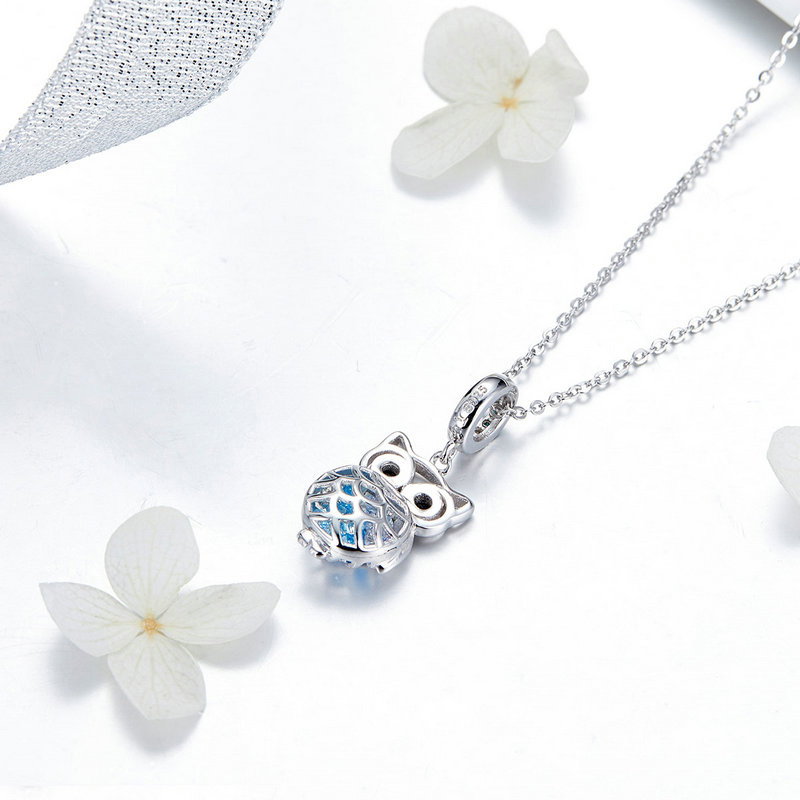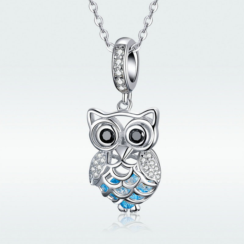 Pandantiv argint bufnita. Materiale: Argint 925, Zirconiu, Placat cu Rodiu. Culoare: Albastru. Inaltime x Latime: 2,6 x 1,1 cm, Greutate: 2,5 grame.