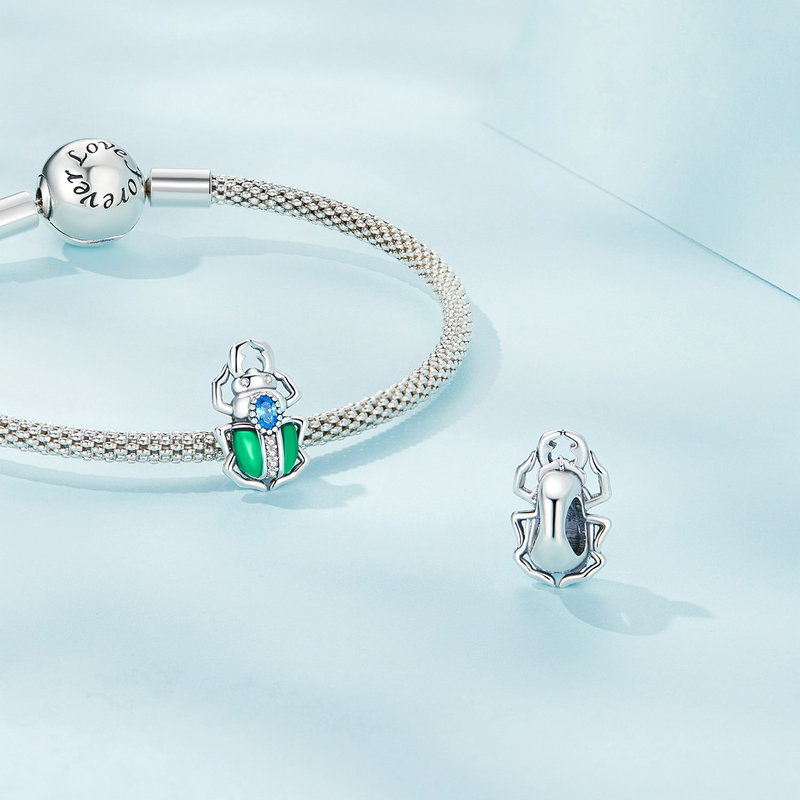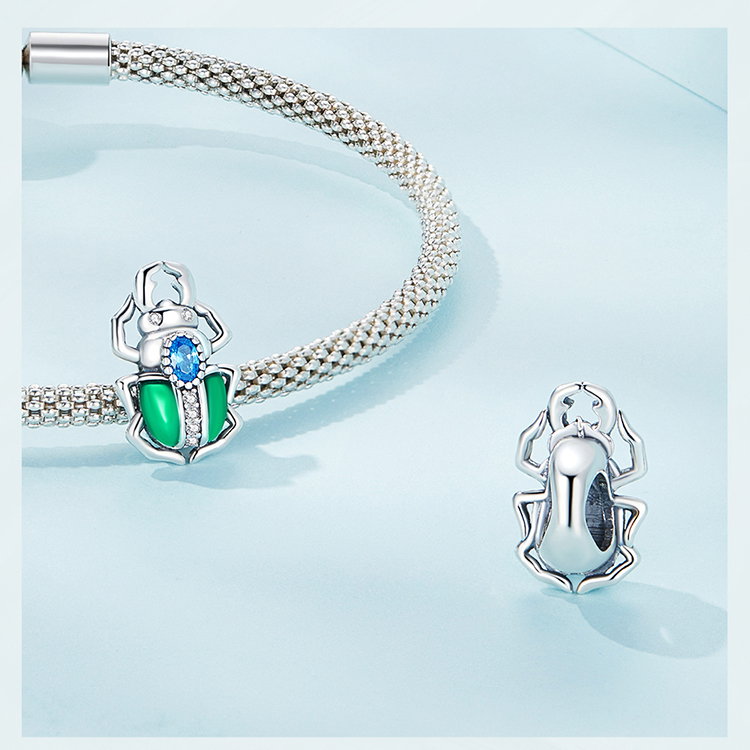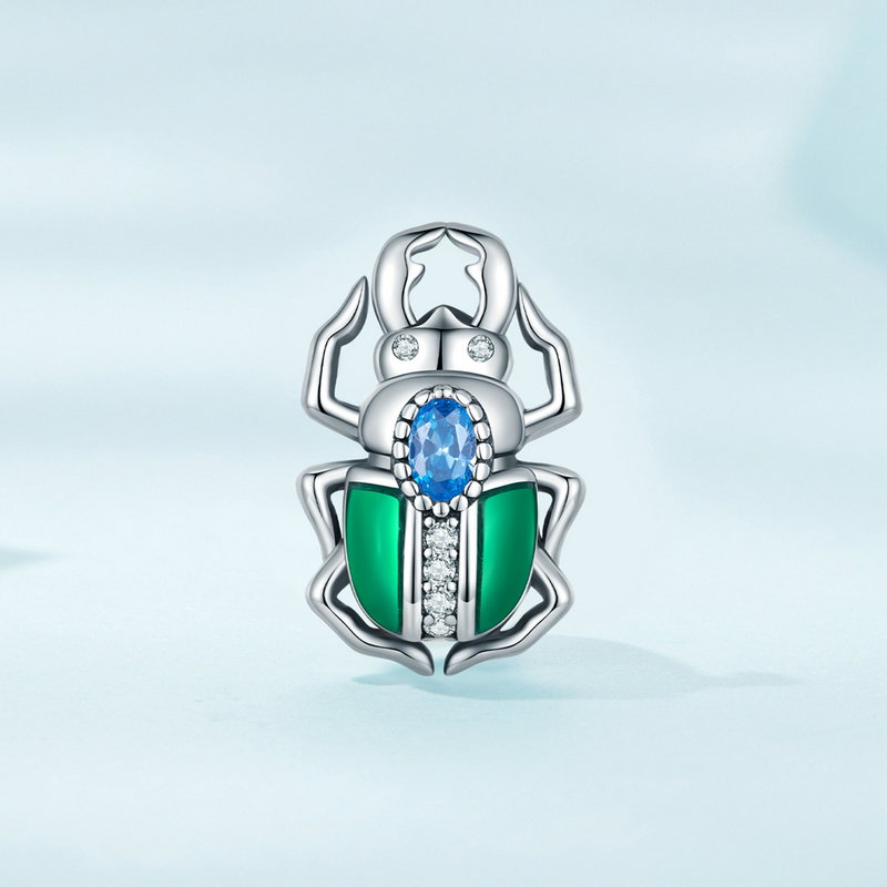 Pandantiv argint carabus. Materiale: Argint 925, Email, Zirconiu. Culoare: Multicolor. Inaltime x Latime: 1,35 x 0,9 cm, Diametru orificiu: 0,45 cm, Piatra principala size: 0,3 x 0,2 cm