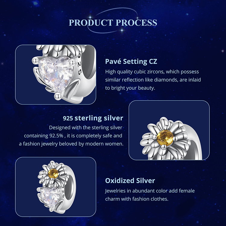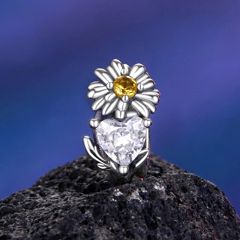 Un simbol al iubirii si al puritatii, acest pandantiv in forma de inimioara, imbracat in stralucirea zirconiei, este insotit de o margareta delicata, aducand un strop de bucurie in fiecare zi. Detaliile fine si finisajul elegant transforma acest accesoriu intr-o alegere perfecta pentru momentele speciale. Ofera-i persoanei dragi un cadou care sa exprime sentimente profunde, iar ea se va simti cu adevarat apreciata.