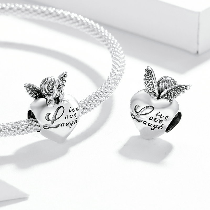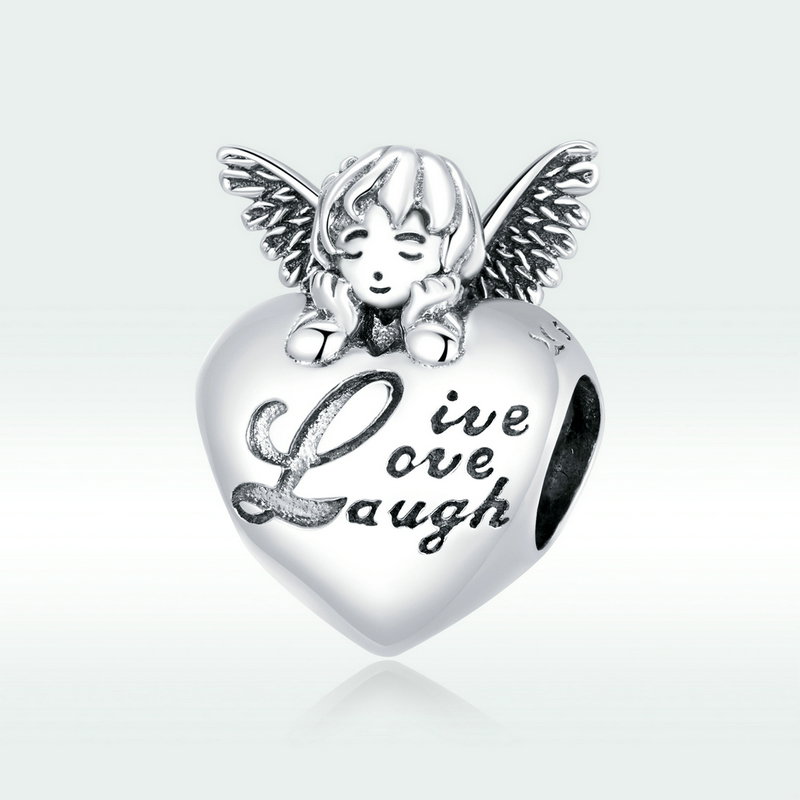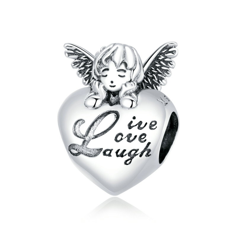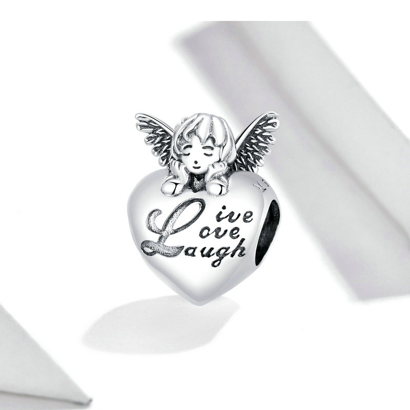 Pandantiv argint ingeras cu Live, Love, Laugh. Materiale: Argint 925. Culoare: Argintiu. Inaltime x Latime: 1,3 x 1,1 cm, Greutate: 2,2 grame.