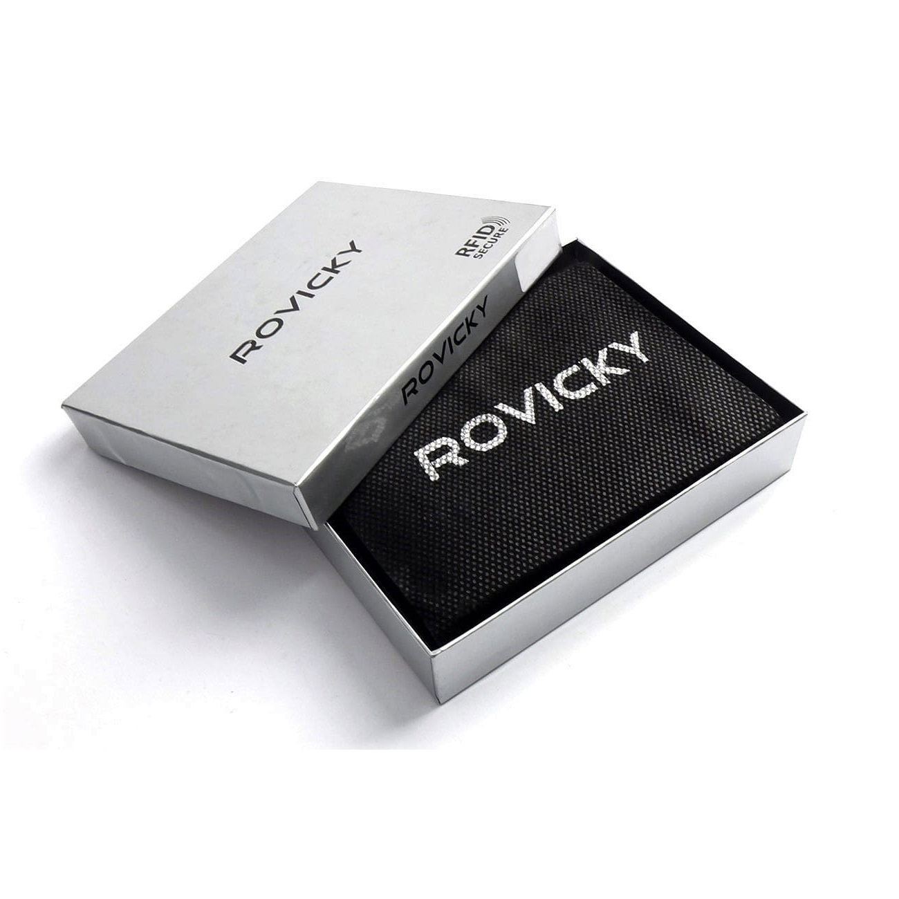 Portbancnota piele naturala Rovicky PBAG001 Negru cu protectie RFID. Aceasta port-bancnota din piele naturala este un accesoriu sigur si usor de folosit (poate fi folosit si ca portofel minimalist). Dispune si de 6 locasuri pentru carduri bancare si 2 pentru documente. Ideal pentru cadou, fiind un produs ambalat in cutie branduita cu marca producatorului.