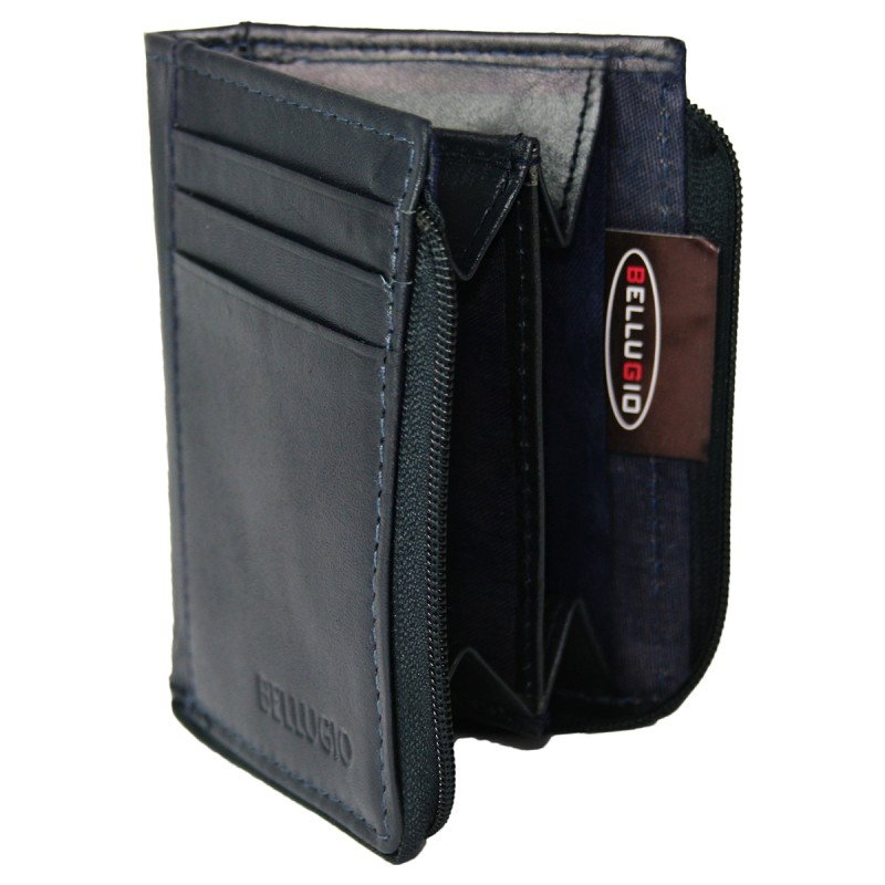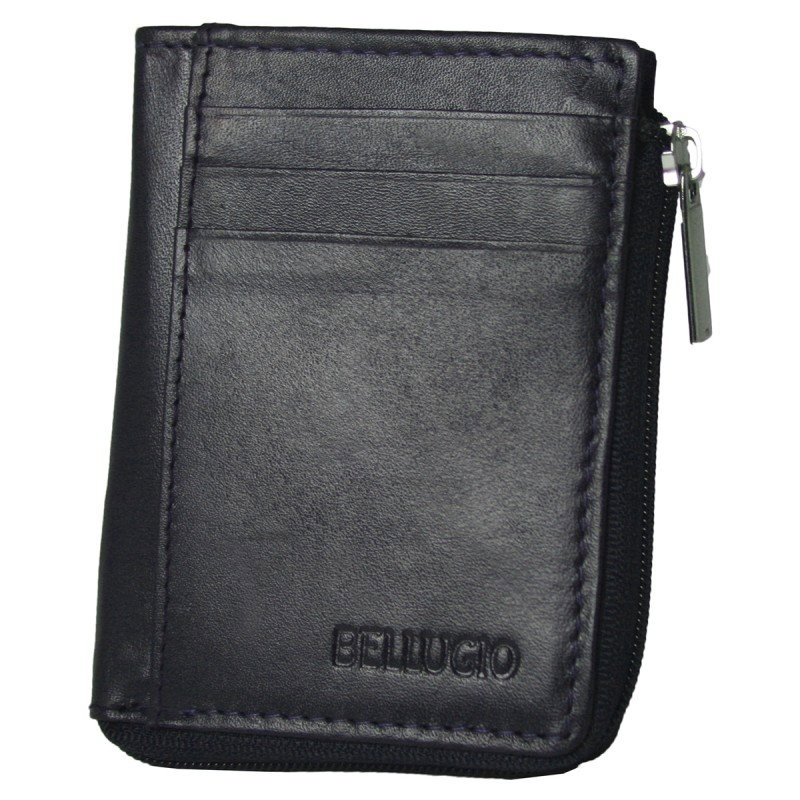 Portcard piele naturala BellugioPCA31 Bleumarin cu fermoar (miniportofel). Acest portcard din piele naturala este un accesoriu sigur si usor de folosit, cu multiple compartimente interioare pentru carduri si un buzunar cu fermoar pentru bancnote si monede. Ideal pentru utilizarea ca portabonament (metrou, RATB etc.). Incape cu usurinta in geanta sau chiar in portfofel.