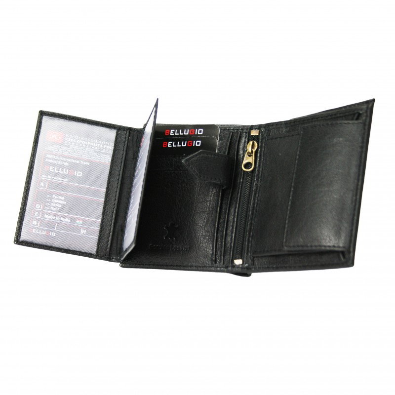 Portofel barbati din piele naturala Bellugio PORMZ002 Negru. Acest portofel din piele naturala este un accesoriu sigur si usor de folosit, cu multiple compartimente interioare pentru bancnote, acte si monede. Ideal pentru cadou (portofelul este ambalat in cutie de carton originala branduita cu marca producatorului). Dimensiuni: 12,5 x 9,5 x 2,5 cm