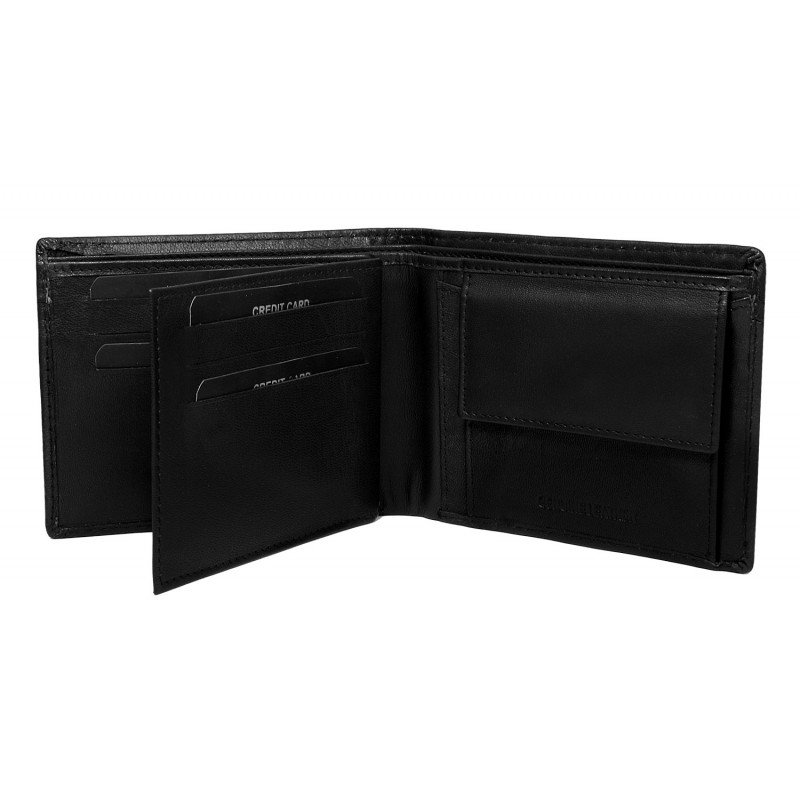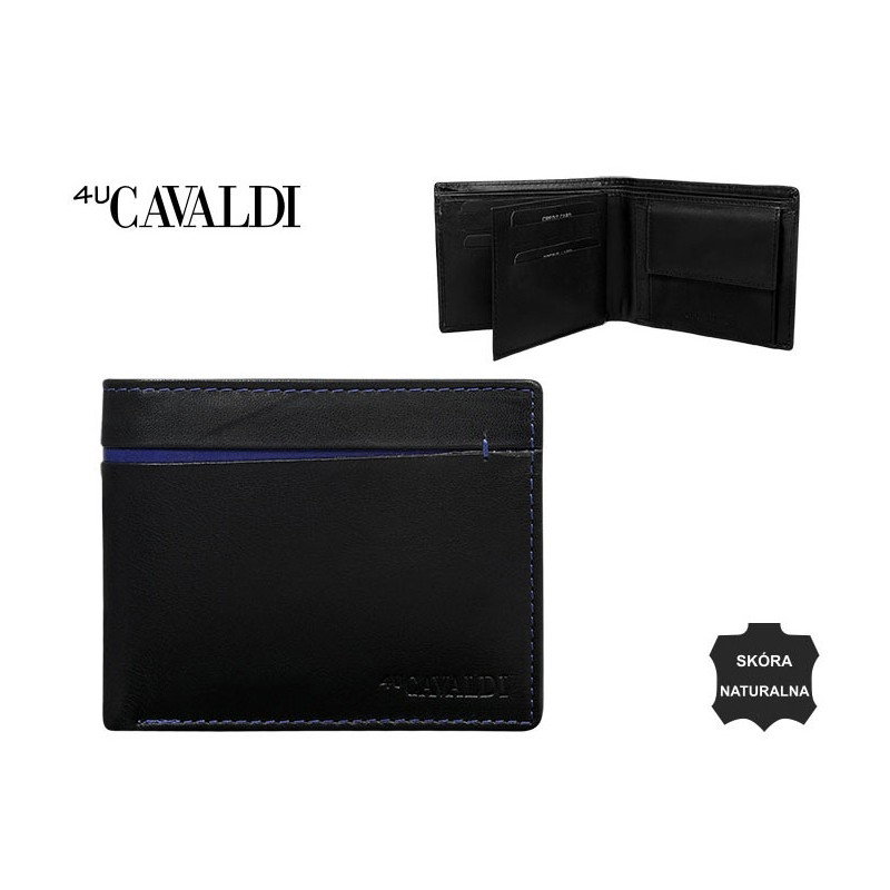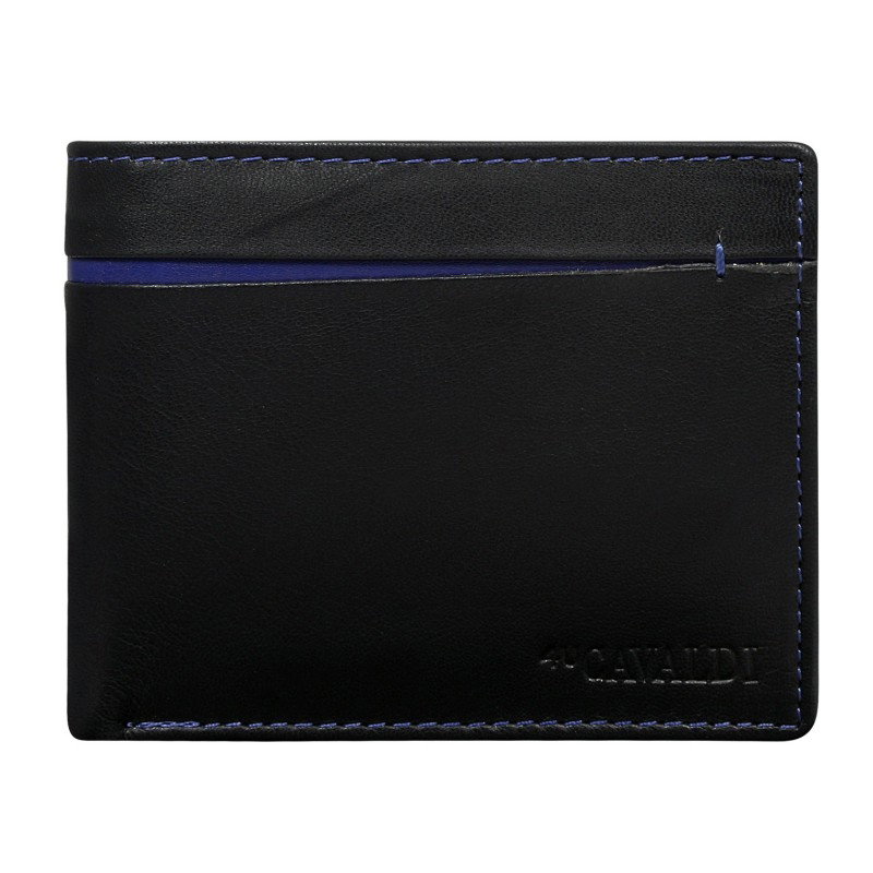 Portofel barbati din piele naturala Cavaldi PORM589 Negru cu dunguta albastra . Acest portofel din piele naturala este un accesoriu sigur si usor de folosit, cu multiple compartimente interioare pentru bancnote, acte si monede. Ideal pentru cadou.