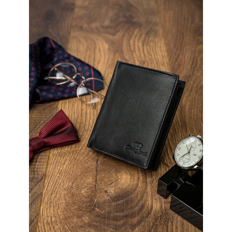 Portofel barbati din piele naturala PORMG061 negru, Paul Rossi, cu protectie RFID. Acest portofel din piele naturala este un accesoriu sigur si usor de folosit, cu multiple compartimente interioare pentru bancnote, acte si monede. Ideal pentru cadou (produs ambalat in cutia branduita a producatorului). Dimensiuni: 12,2 x 9,5 x 2 cm