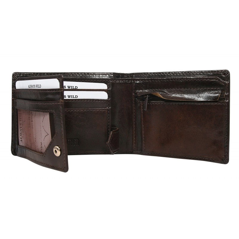 Portofel minimalist barbati din piele naturala Wild PORM592 Maron. Acest portofel mic din piele naturala este un accesoriu sigur si usor de folosit, cu multiple compartimente interioare pentru bancnote, acte si monede. Ideal pentru tineri sau persoane in cautare de mai mult spatiu si comoditate in utilizate (intra usor in buzunare / genti ).