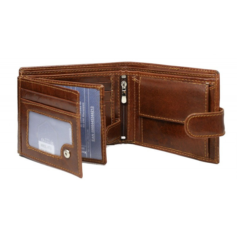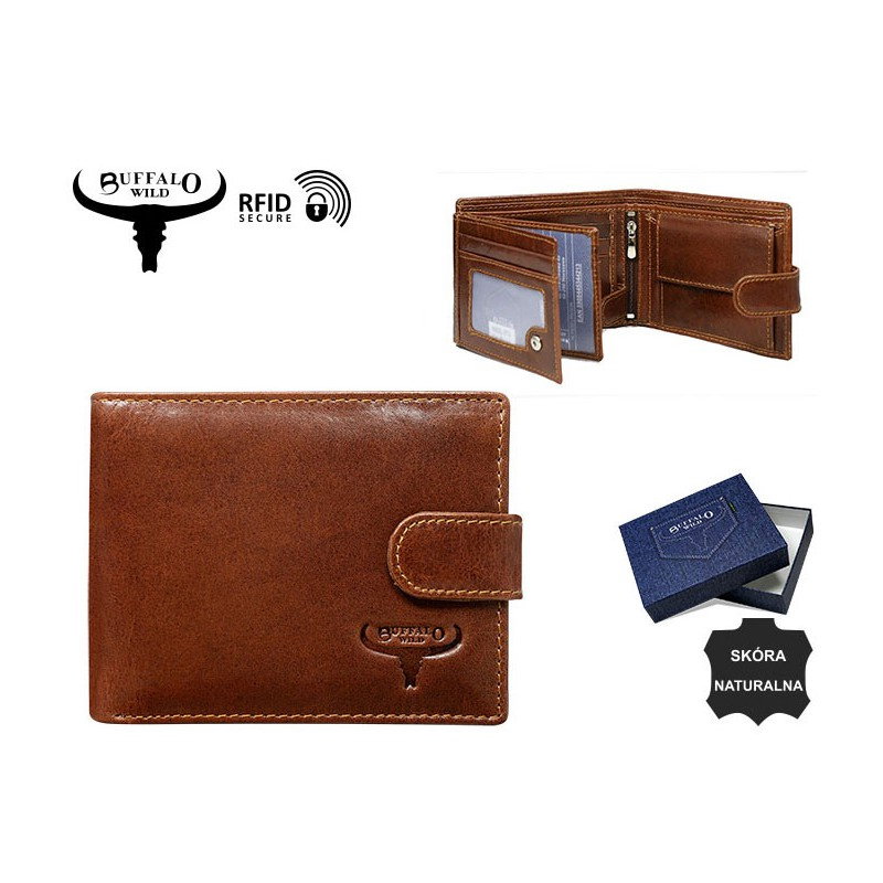 Portofel barbati din piele naturala Wild Buffalo PORMG006 Maron coniac, cu protectie RFID. Acest portofel din piele naturala este un accesoriu sigur si usor de folosit, cu multiple compartimente interioare pentru bancnote, acte si monede. Ideal pentru cadou (produs ambalat in cutia originala a producatorului). Dimensiuni: 12,5 x 10 x 2,5 cm
