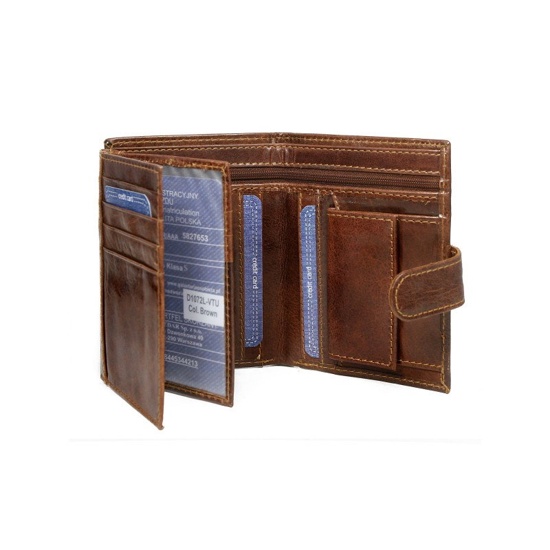 Portofel barbati vertical din piele naturala Wild Buffalo PORMG007 Maron coniac, cu protectie RFID . Acest portofel din piele naturala este un accesoriu sigur si usor de folosit, cu multiple compartimente interioare pentru bancnote, acte si monede. Ideal pentru cadou (produs ambalat in cutia originala a producatorului). Dimensiuni: 13 x 10 x 2,5 cm