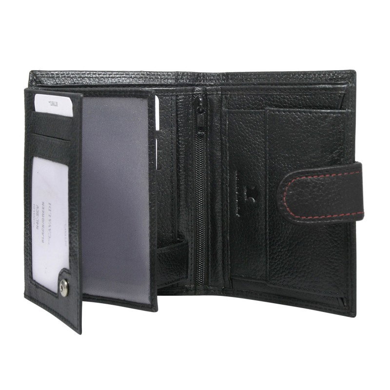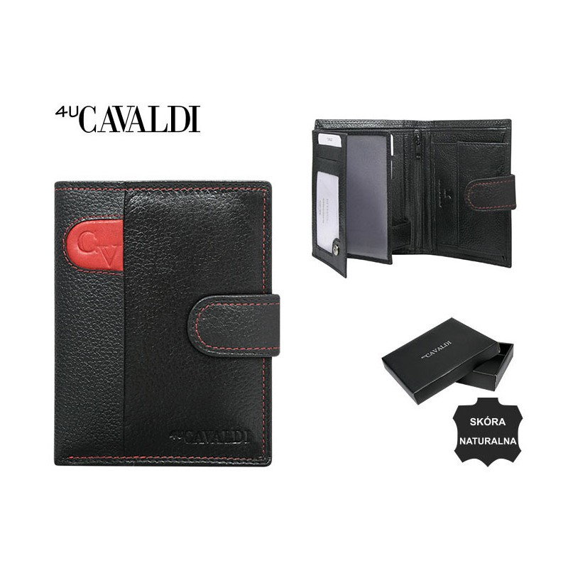 Portofel vertical pentru barbati din piele naturala PORMG025 negru cu rosu, Cavaldi. Acest portofel din piele naturala este un accesoriu sigur si usor de folosit, cu multiple compartimente interioare pentru bancnote, acte si monede. Ideal pentru cadou (produs ambalat in cutia branduita a producatorului). Dimensiuni: 12,5 x 10 x 2 cm