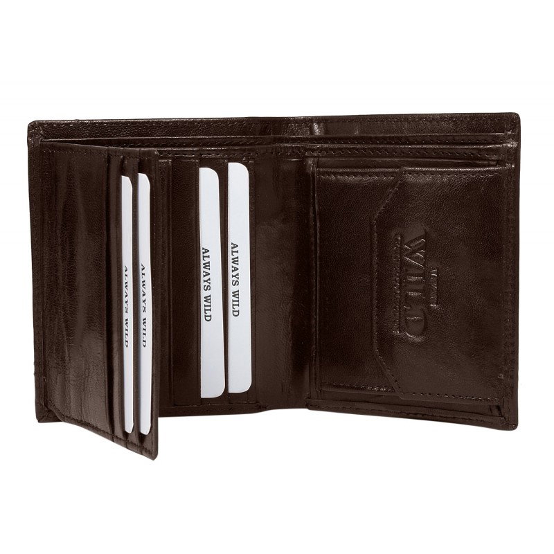 Portofel vertical mic si plat din piele naturalaPORMG050, Wild,Maro. Acest portofel minimalist din piele naturala este un accesoriu sigur si usor de folosit, cu multiple compartimente interioare pentru bancnote, acte si monede. Ideal pentru tineri / copii sau persoane in cautare de mai mult spatiu si comoditate in utilizate (intra foarte usor in buzunare / genti ). Dimensiuni:11 x 9 x 2 cm. Ambalaj: cutie carton