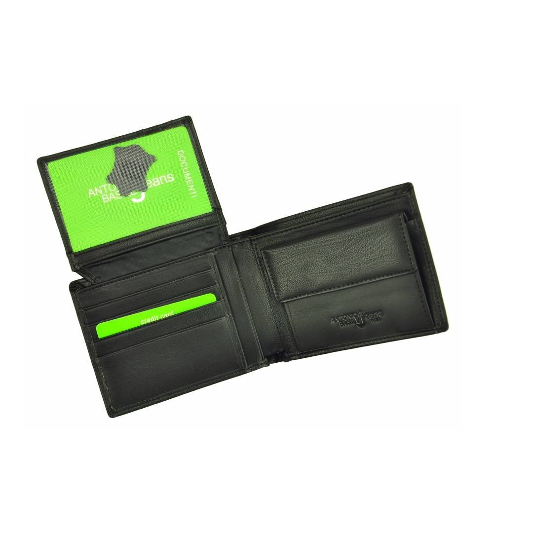 Portofel piele barbati Culoare: Negru cu banda bordo Marcă: ANTONIO BASILE Material: 100% piele naturala Dimensiuni: 6 cm x 12,5 cm x 13 cm Greutate: 0,1 KG Căptușeală internă: 100% Poliester Compartimente carduri de credit: 7 Compartimente laterale pt. documente: 3 (1 parte dreapta - 2 partea stângă ) Compartimente bancnote: 2 Compartiment pentru monede cu capsa 1 clapeta laterală stângă cu deschidere ascendentă Livrat in cutie originala branduita cu marca producatorului