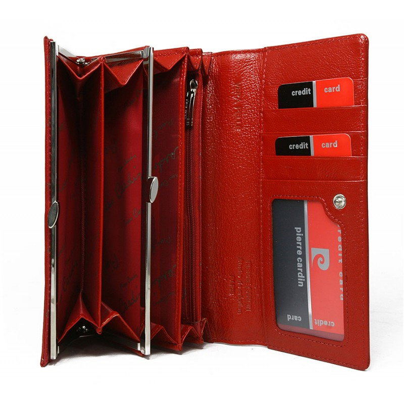 Portofel dama de lux din piele naturala Pierre Cardin PORT563 Rosu. Acest portofel din piele naturala este un accesoriu sigur si usor de folosit, cu multiple compartimente interioare pentru bancnote, acte si monede. Ideal pentru cadou (portofelul este ambalat in cutie de carton originala branduita cu marca producatorului).