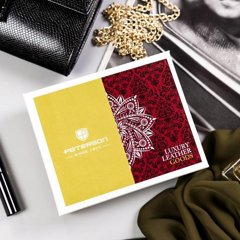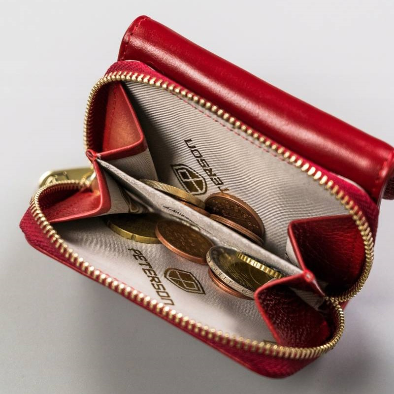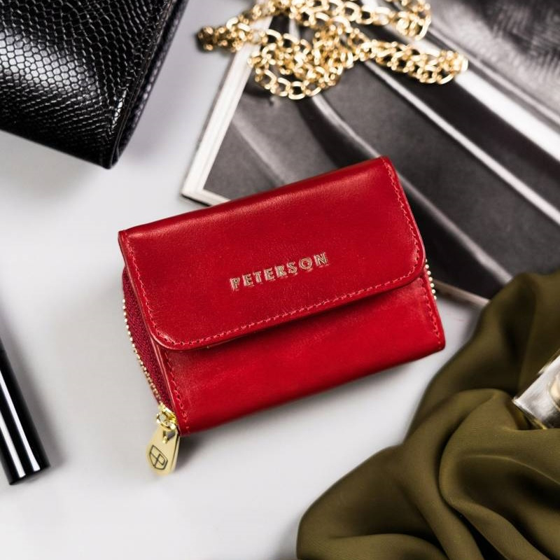 Portofel dama din piele naturala Peterson PORTG512, Rosu, cu protectie carduri RFID. Acest portofel din piele naturala este un accesoriu sigur si usor de folosit, cu multiple compartimente interioare pentru carduri, bancnote, acte si monede. Ideal pentru cadou (portofelul este ambalat in cutie de carton originala branduita cu marca producatorului). Dimensiuni: 9 x 7 x 3 cm.