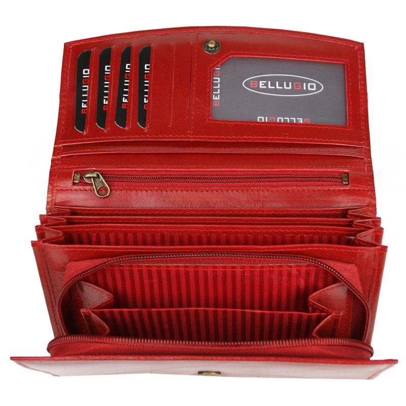 Portofel dama elegant din piele naturala Bellugio PORTZ001 Rosu. Acest portofel din piele naturala este un accesoriu sigur si usor de folosit, cu multiple compartimente interioare pentru bancnote, acte si monede. Ideal pentru cadou (portofelul este ambalat in cutie de carton originala branduita cu marca producatorului). Dimensiuni: 17,5 x 9,5 x 3,5 cm