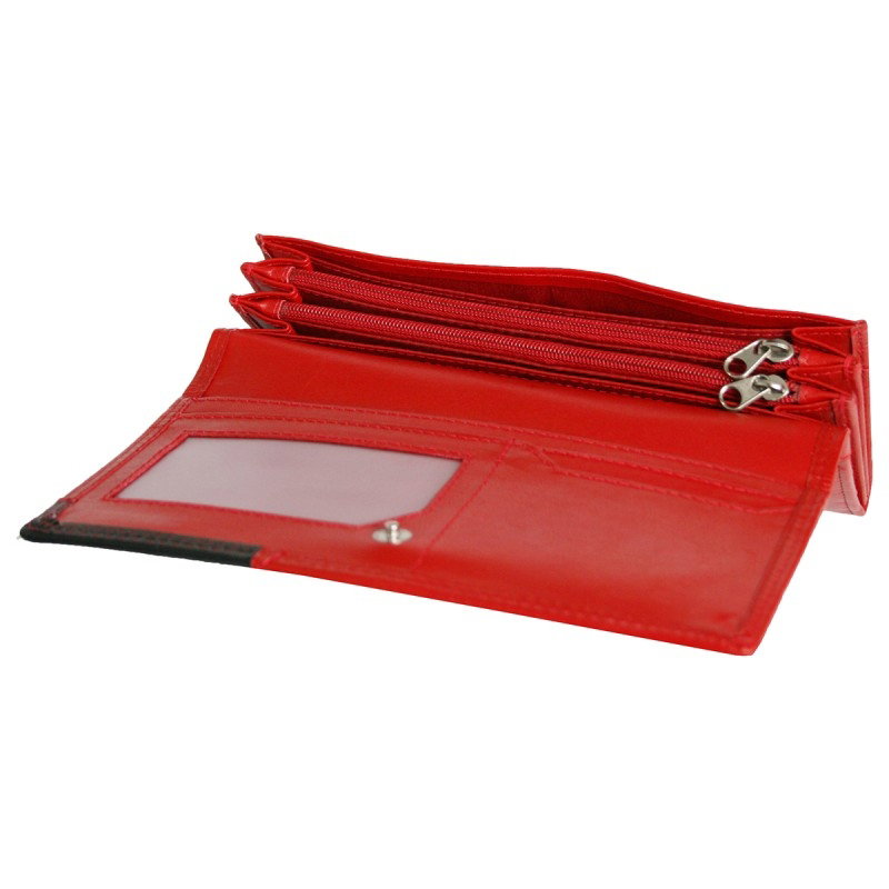 Portofel dama piele naturala Bellugio PORT500 Rosu si Negru. Acest portofel din piele naturala este un accesoriu sigur si usor de folosit, cu multiple compartimente interioare pentru bancnote, acte si monede. Ideal pentru cadou (portofelul este ambalat in cutie de carton originala branduita cu marca producatorului).