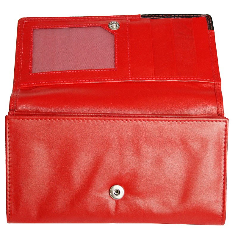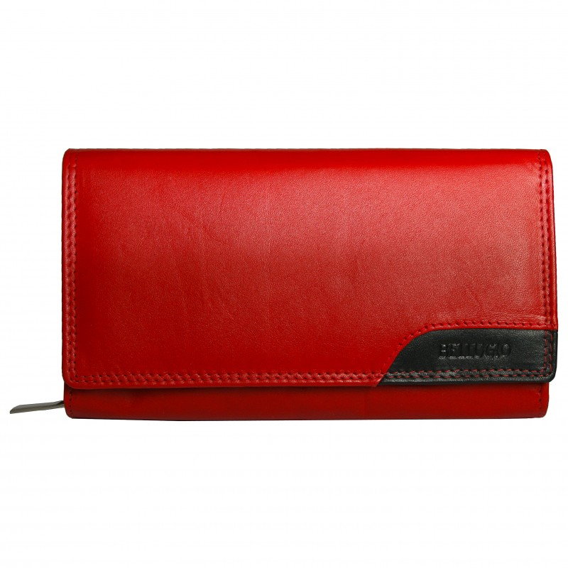 Portofel dama piele naturala Bellugio PORT538 Rosu si Negru. Acest portofel din piele naturala este un accesoriu sigur si usor de folosit, cu multiple compartimente interioare pentru bancnote, acte si monede. Ideal pentru cadou (portofelul este ambalat in cutie de carton originala branduita cu marca producatorului).