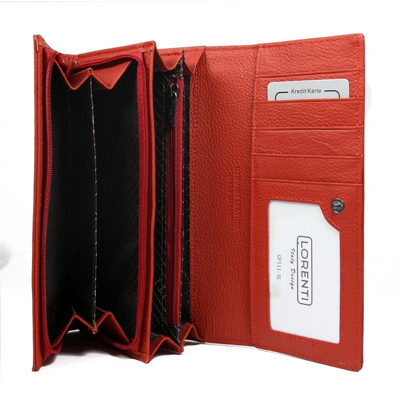 Portofel dama piele naturala Lorenti PORT414 Rosu. Acest portofel din piele naturala este un accesoriu sigur si usor de folosit, cu multiple compartimente interioare pentru bancnote, acte si monede. Ideal pentru cadou (portofelul este ambalat in cutie de carton originala branduita cu marca producatorului).